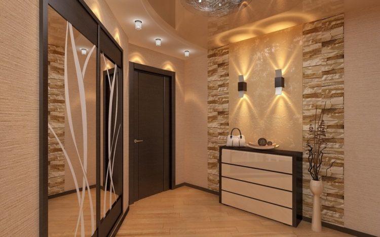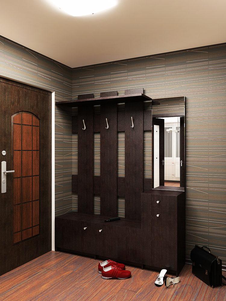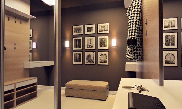 El interior del pasillo en el apartamento, que está hecho en tonos oscuros, hará que la habitación sea sombría y pequeña, por lo que es mejor combinar tales tonos con tonos claros.
