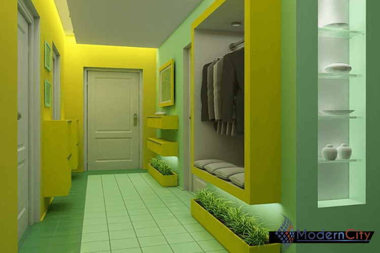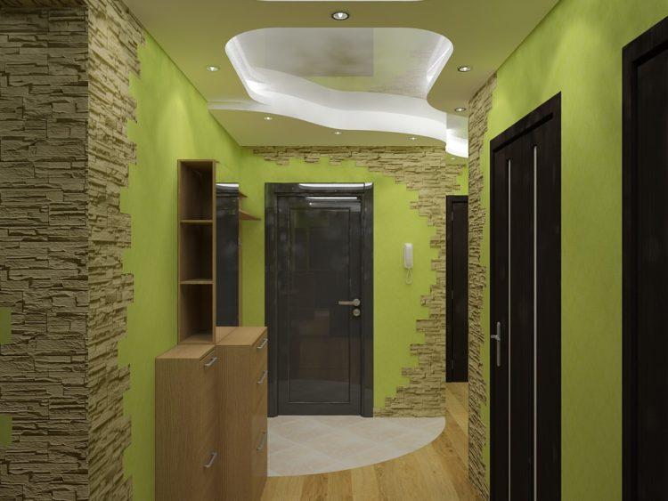 El color verde siempre se ve muy fresco y es perfecto para personas alegres. Se pueden hacer hermosos pasillos en suaves tonos de verde, luego el color no molestará y al mismo tiempo se verá muy elegante.