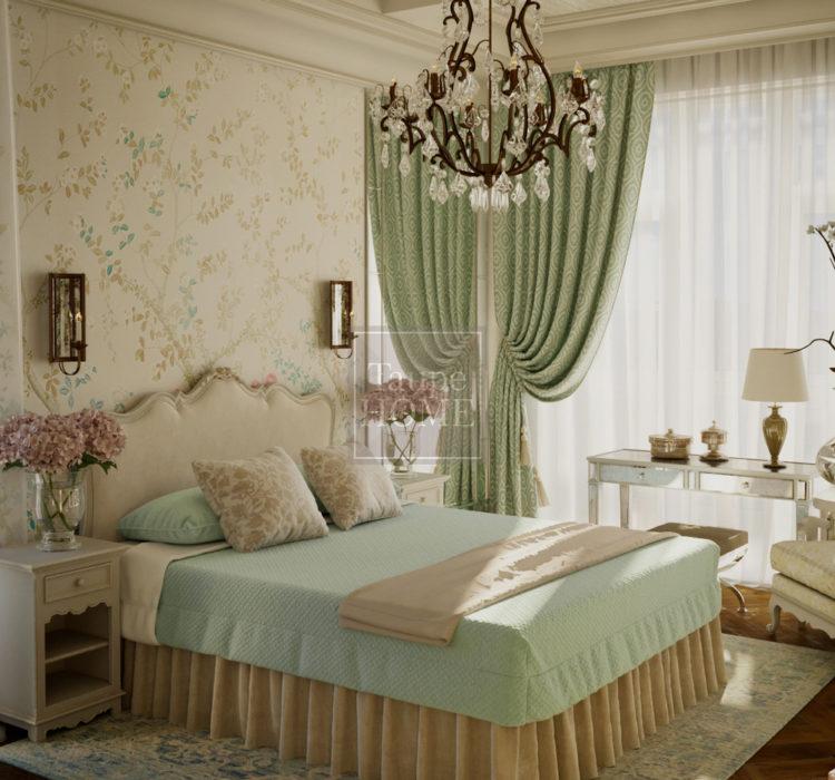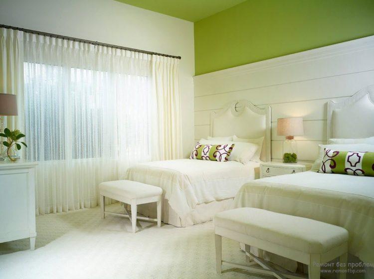 El diseño interior de la habitación en tonos verdes es adecuado para habitaciones infantiles. Resultará especialmente hermoso si realiza reparaciones en un pequeño vivero en verde y dibuja flores en las paredes.