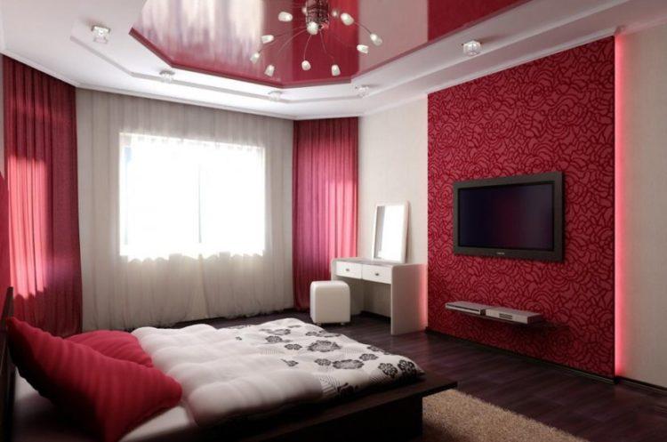 La habitación roja para dormir en el apartamento es adecuada para personalidades brillantes y emocionales. A menudo, este color para el dormitorio es elegido por las chicas.