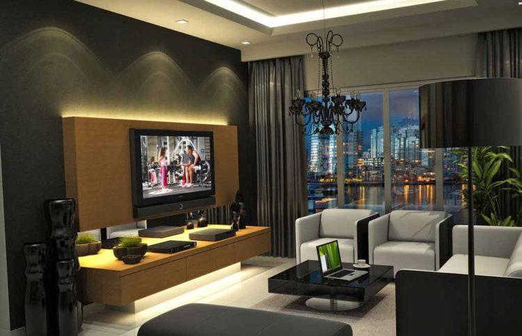 Los detalles en negro en la sala de estar lo harán elegante e inusual. La sala está en tonos negros: a continuación se presentan diseños, fotos de habitaciones reales e interesantes opciones de interior.