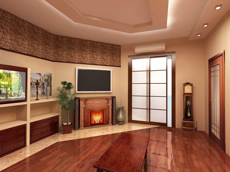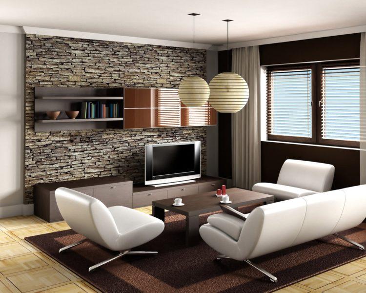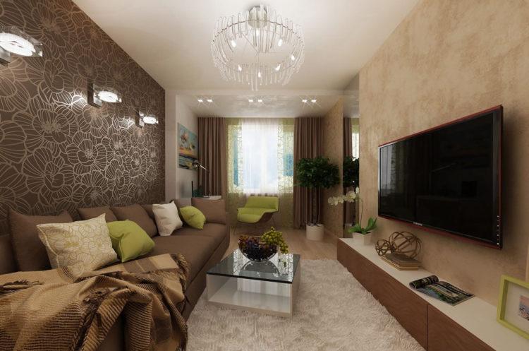 El diseño marrón de la sala, cuya foto se selecciona a continuación, se ve bastante hermosa y rica. Pero no debe excederse con el marrón en la sala de estar, ya que existe una alta probabilidad de que el conjunto de muebles se fusione con las paredes.