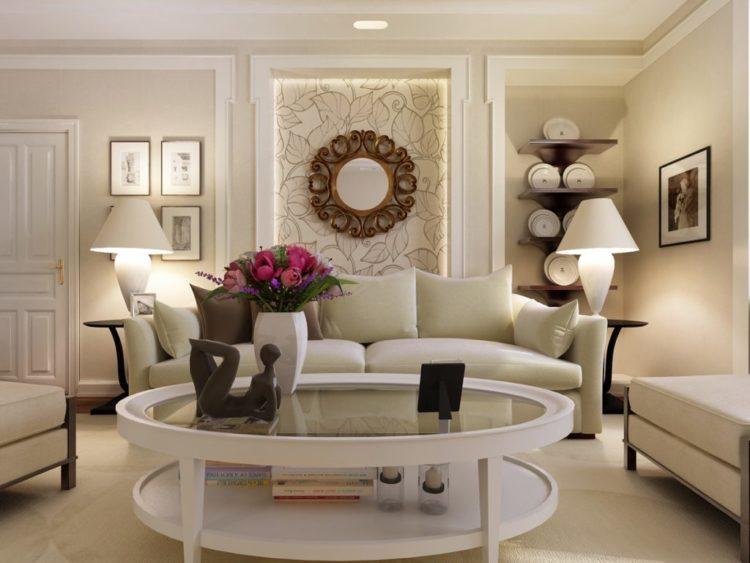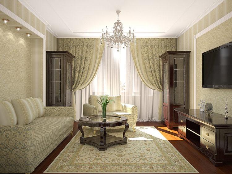 Los tonos beige para el salón son la solución ideal para quienes tienen una habitación pequeña. En tales colores, siempre se obtiene una habitación hermosa, especialmente al elegir muebles de madera natural.