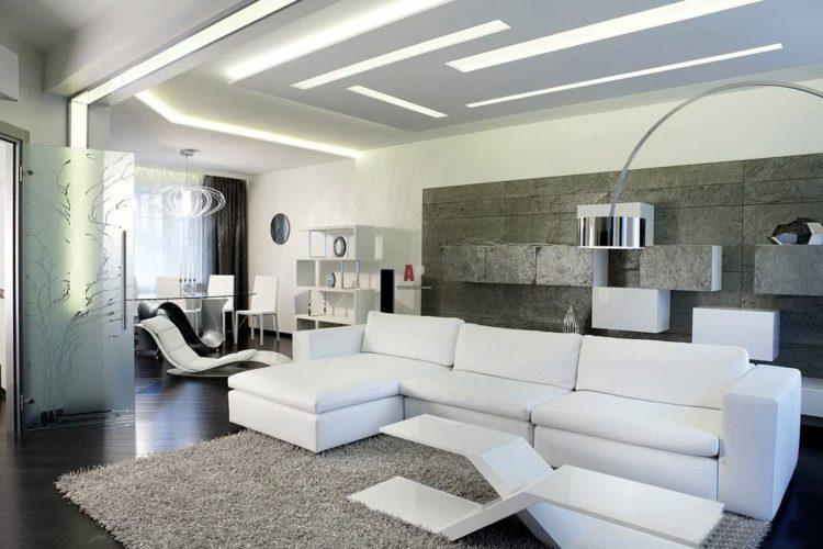 El interior blanco de la sala debe estar lo más pensado posible. Si va demasiado lejos con el blanco en la sala de estar, se creará un ambiente hospitalario y no se sentirá cómodo en esa habitación.