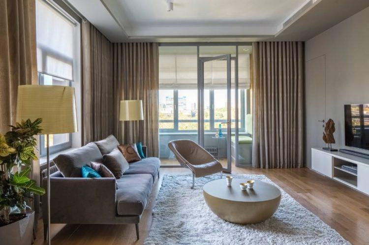 Los tonos grises son los más exitosos para la sala de estar, ya que combinan bien con cualquier color. Puede ver las fotos reales de la sala en el apartamento en tonos grises a continuación.