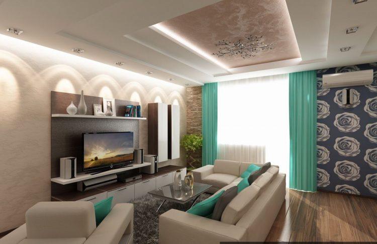 El diseño moderno de la sala se puede hacer no solo en colores claros y suaves, sino también con la combinación y el uso correctos de colores, puede hacer que la sala de estar tenga colores vivos. En este último caso, el diseño de todos los detalles es importante, de modo que los muebles se combinen con papel tapiz y otros elementos y se adhieran a un estilo único. Si esto no se cumple al planificar el diseño de una sala grande o pequeña, entonces la sala de estar puede resultar demasiado brillante e insípida, mientras que todo se verá voluminoso.