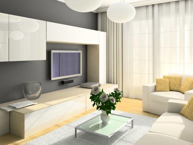 Al elegir un diseño para una sala de estar, es importante tener en cuenta la descripción de la sala, su tamaño y otros matices. Al elegir un esquema de color para la sala de estar, es igualmente importante tener en cuenta la ubicación de las ventanas. Entonces, por ejemplo, si las ventanas de la sala están orientadas al sur, las paredes y los acentos azules, azules o lilas se verán bien. Si las ventanas de su sala de estar miran hacia el norte, entonces la mejor solución sería hacer la habitación en blanco, beige u otro color claro.