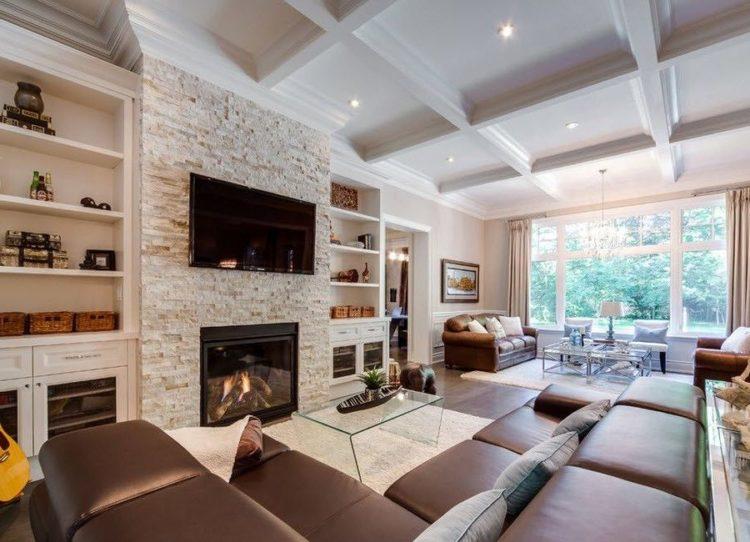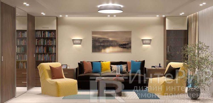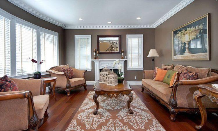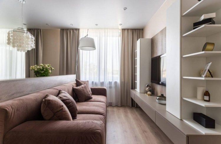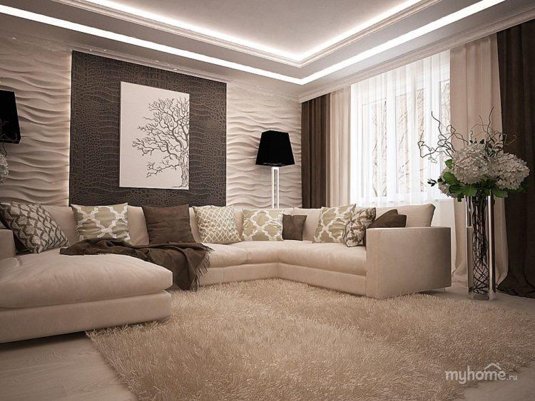 Al igual que el beige, el marrón es muy popular para la sala de estar, porque es del color de la madera. De hecho, muy rara vez el diseño de la sala de estar (foto a continuación) no tiene elementos marrones.