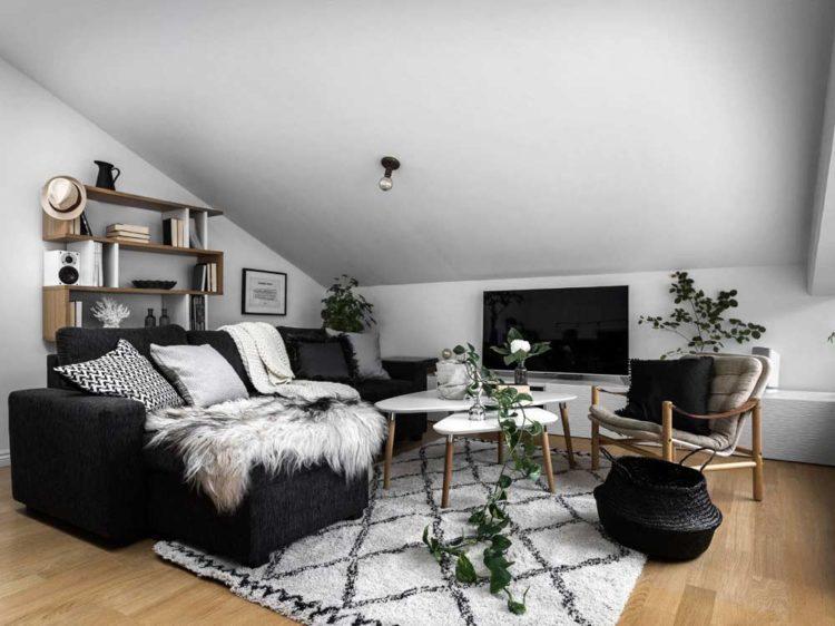 El color negro se encuentra en el interior en forma de acentos brillantes de paredes o muebles. Los interiores negros de las salas de estar en el apartamento (fotos reales y verdaderas) pueden agregar tristeza solo si te excedes con este color.