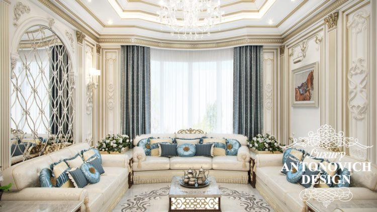 La sala de estar, cuyo interior contiene mucho azul, inspirará una sensación de espacios abiertos al mar y cielo azul. En dicho interior, puede usar imágenes del mar, o simplemente puede agregar algunos detalles azules brillantes al interior de un color diferente.