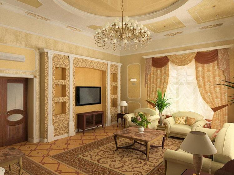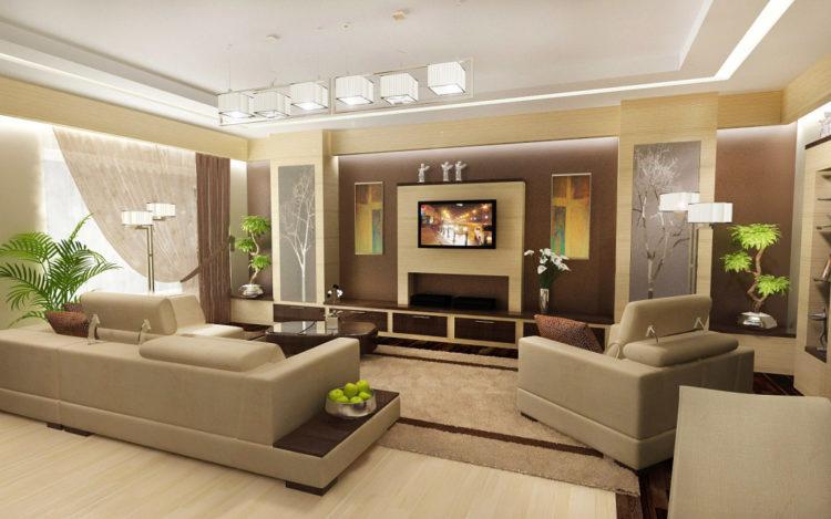 Tanto los estilos modernos como los clásicos adoran usar diferentes tonos de beige en el diseño. El interior de la sala de estar (las fotos transmiten tonos de color muy bien) en un estilo beige siempre es apropiado. Sin embargo, debe tener cuidado y aun así agregar algunos detalles brillantes.