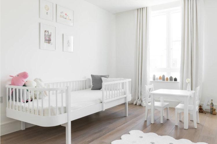 El diseño de la habitación infantil para la niña en colores blancos y sus tonos, como tono principal de la decoración, es una excelente oportunidad para crear una imagen fácil y limpia.