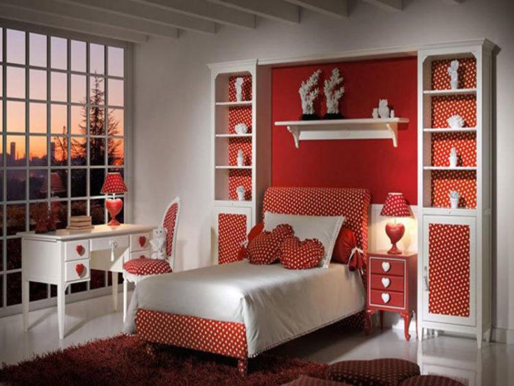 El interior de la habitación para la niña puede contener objetos decorados de color rojo. Estos artículos llevan no solo una carga estética, sino que también son artículos interiores funcionales.
