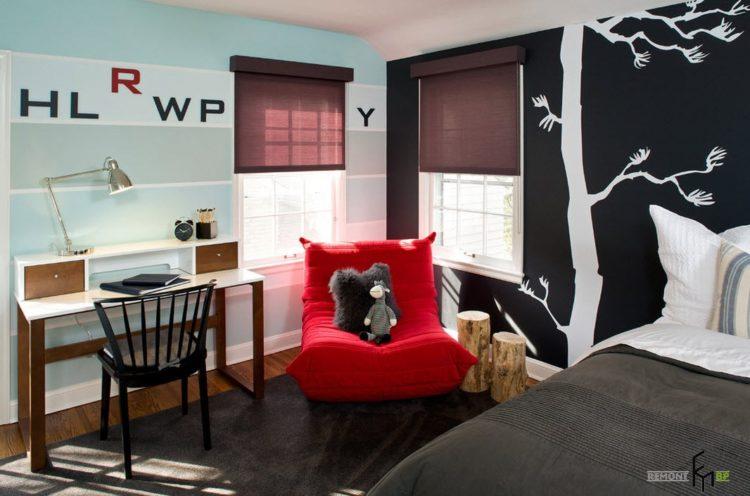 Los tonos oscuros son más adecuados para decorar una habitación para adolescentes. La elección de este color debe abordarse con precaución e intentar diluirlo con elementos más claros y brillantes.