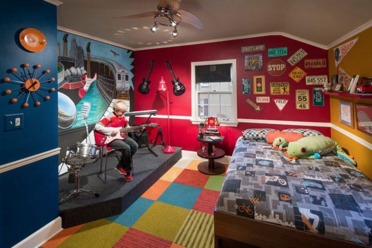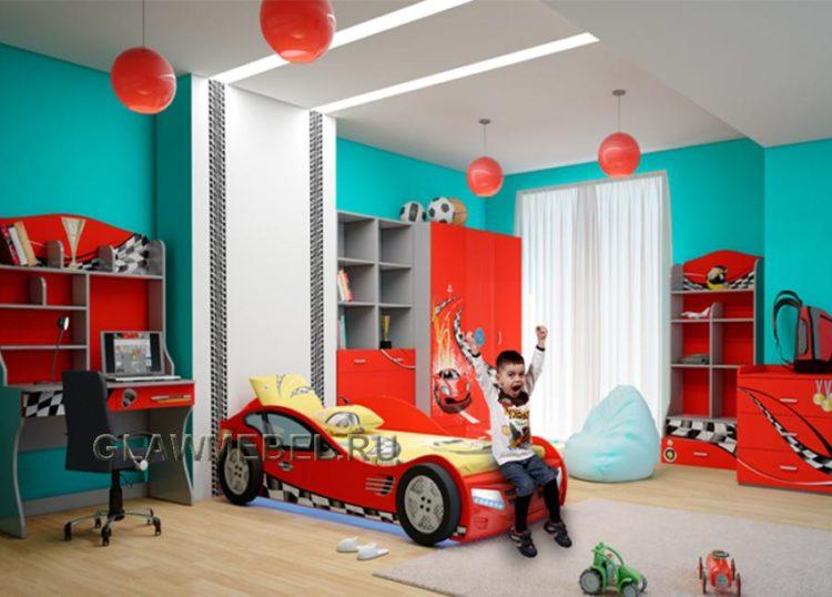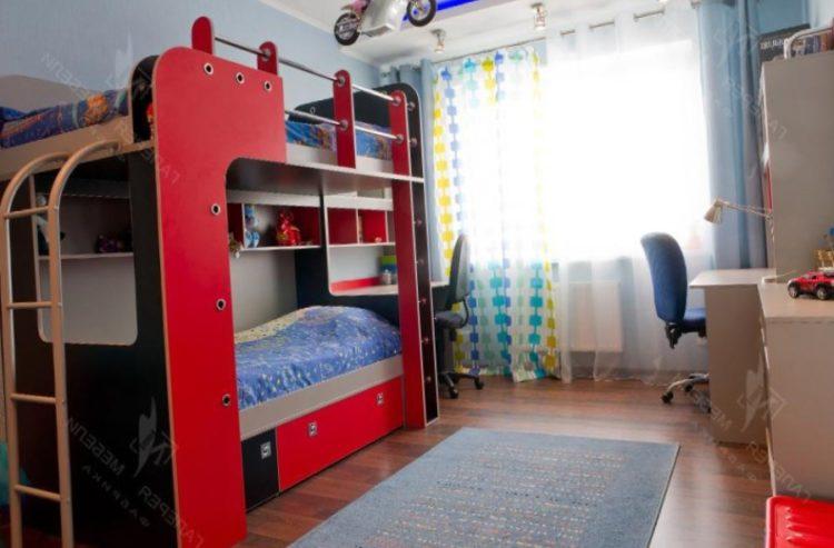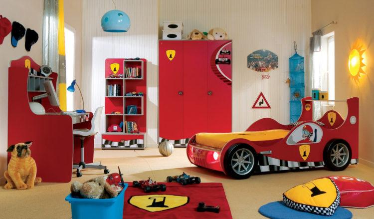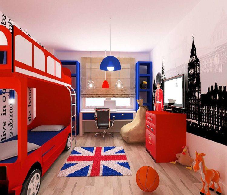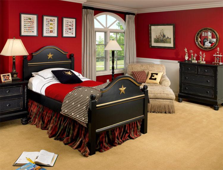 La habitación infantil para niños, hecha en rojo, es la solución para niños activos, valientes y enérgicos.