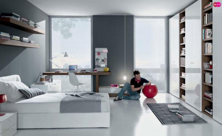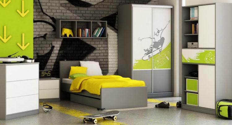 Un color gris discreto y noble es una base excelente para colocar acentos brillantes, que todo adolescente necesita.