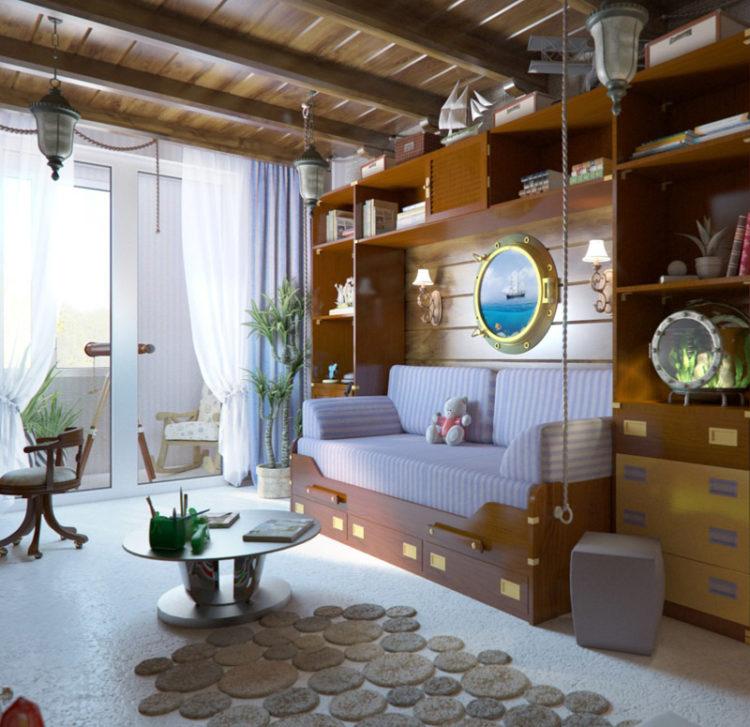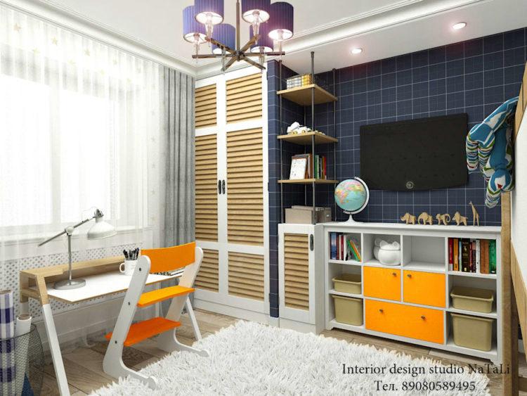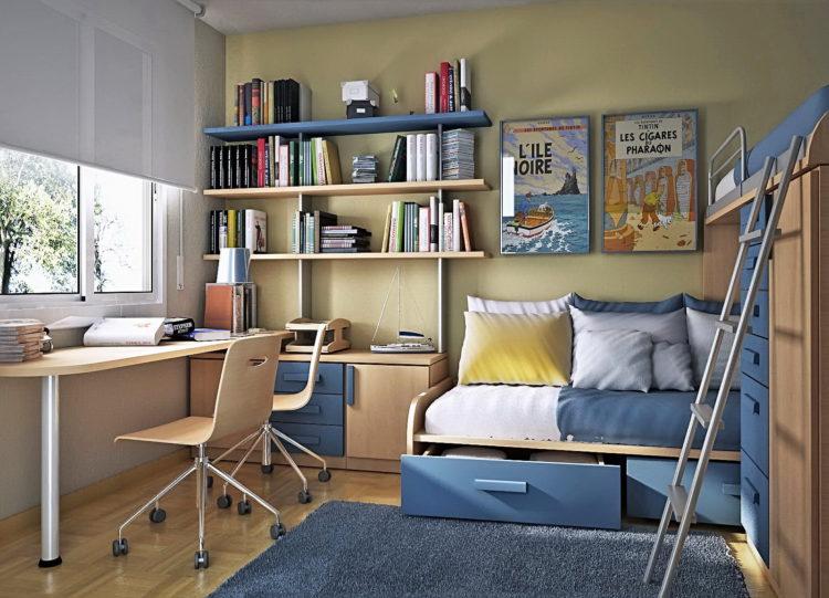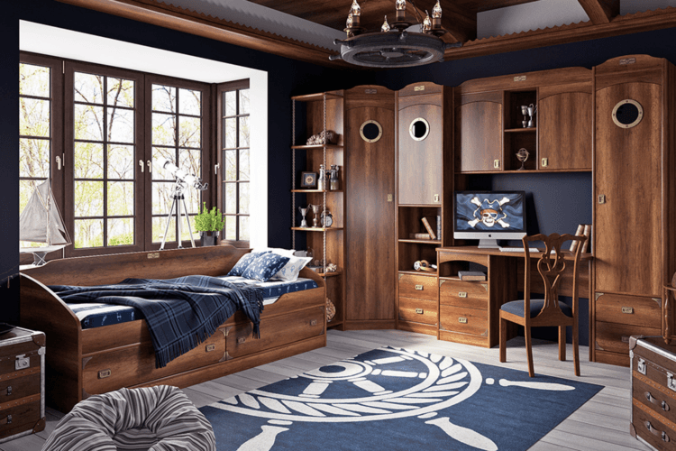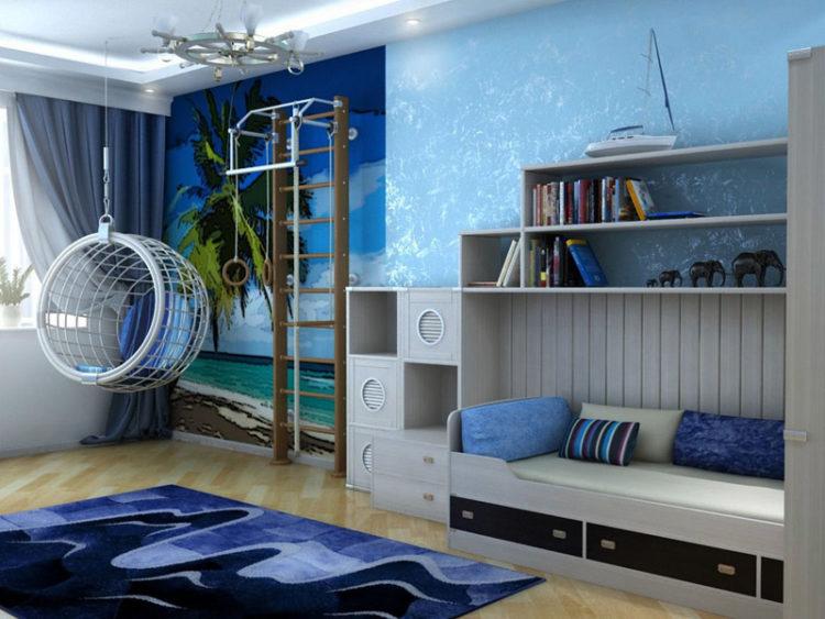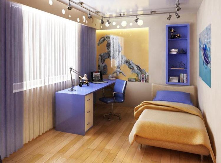 A menudo, una habitación para un niño está decorada en tonos azules. El lugar de trabajo, decorado en azul, ayudará a concentrarse y frenar las emociones.