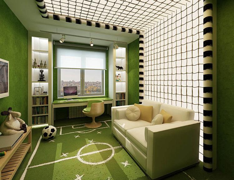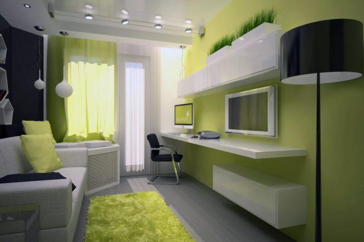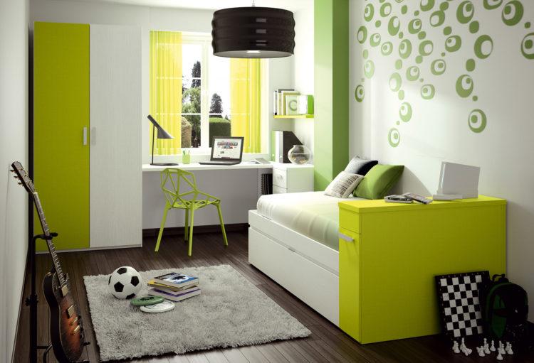 El interior de la habitación del adolescente en tonos verdes es una muy buena solución, porque ese color no solo es agradable a la vista, sino que también estimula perfectamente los procesos de pensamiento, mejora la atención y la memoria.