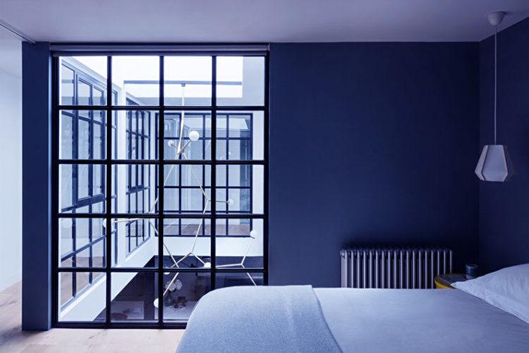 El azul en algunos de sus colores menos saturados no solo está permitido, sino que también puede usarse como el principal en el estilo loft. Más bien debería ser un color gris azulado o un azul desaturado.