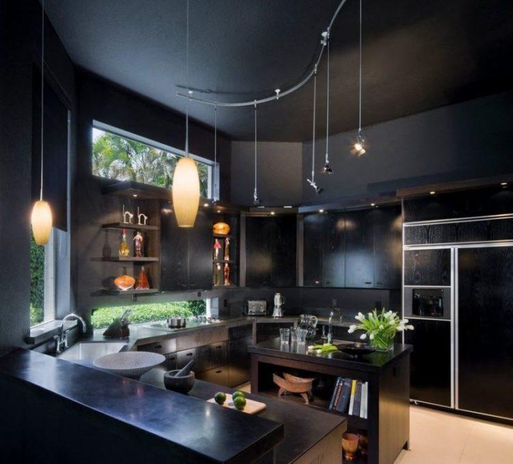 El color negro a menudo se adapta bien al estilo loft, las fotos que se presentan a continuación lo confirman. Los muebles, electrodomésticos o cortinas negros se ven especialmente elegantes.