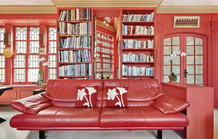 Una habitación u oficina en el estilo loft no se puede hacer completamente en rojo, pero algunas sombras se pueden usar en pequeños detalles que no serán pegadizos, sino originales.