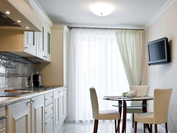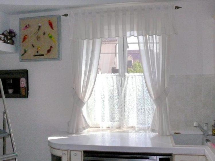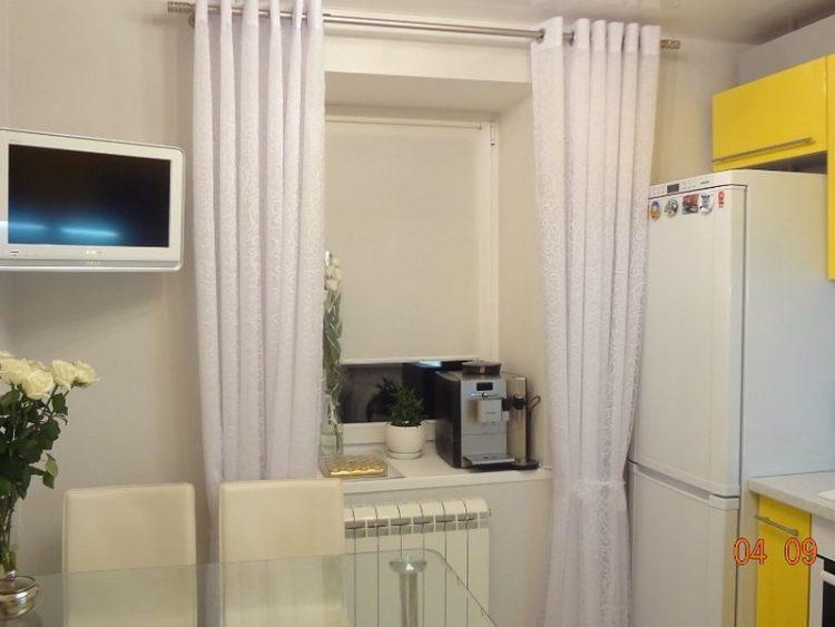 Las cortinas cortas blancas siempre son buenas para una pequeña cocina. Con una combinación exitosa de colores, las cortinas blancas resultan elegantes y originales, al tiempo que refrescan el interior de la cocina.