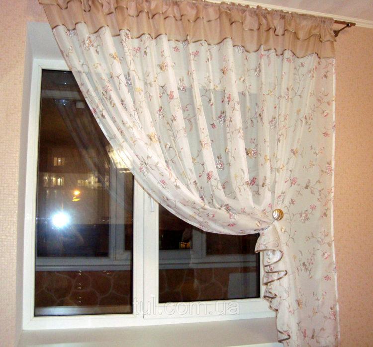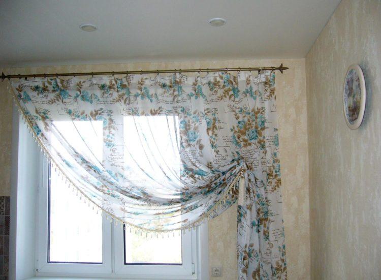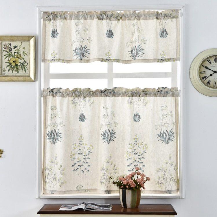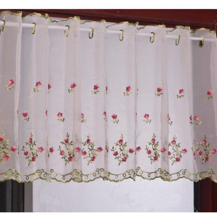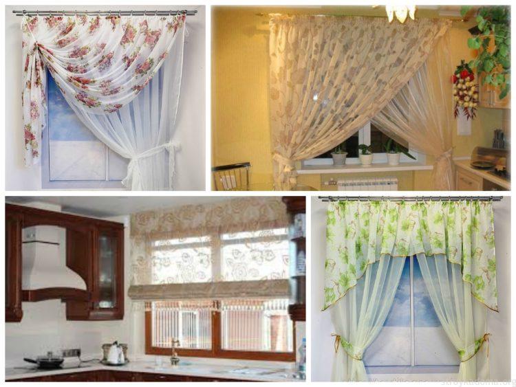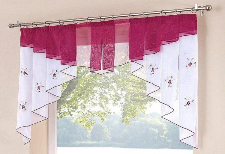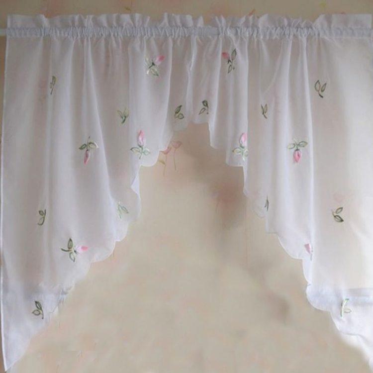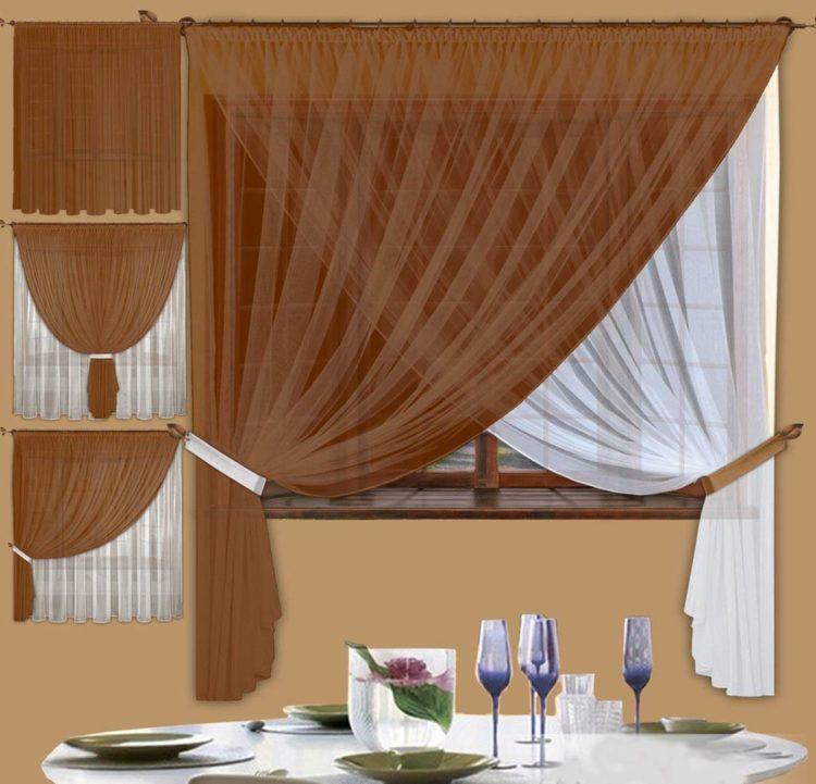 Para una cortina corta, es mejor elegir telas livianas: organza, nylon, malla, ya que los patrones de tela más densos pueden parecer pesados y hacer que el espacio de la cocina sea visualmente aún más pequeño. A continuación presentamos a su atención varias cortinas cortas para la cocina: fotos, diseños interesantes y esquemas de colores inusuales.