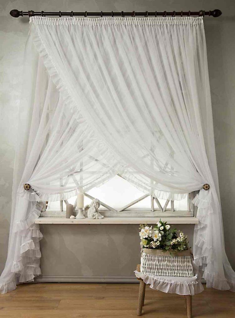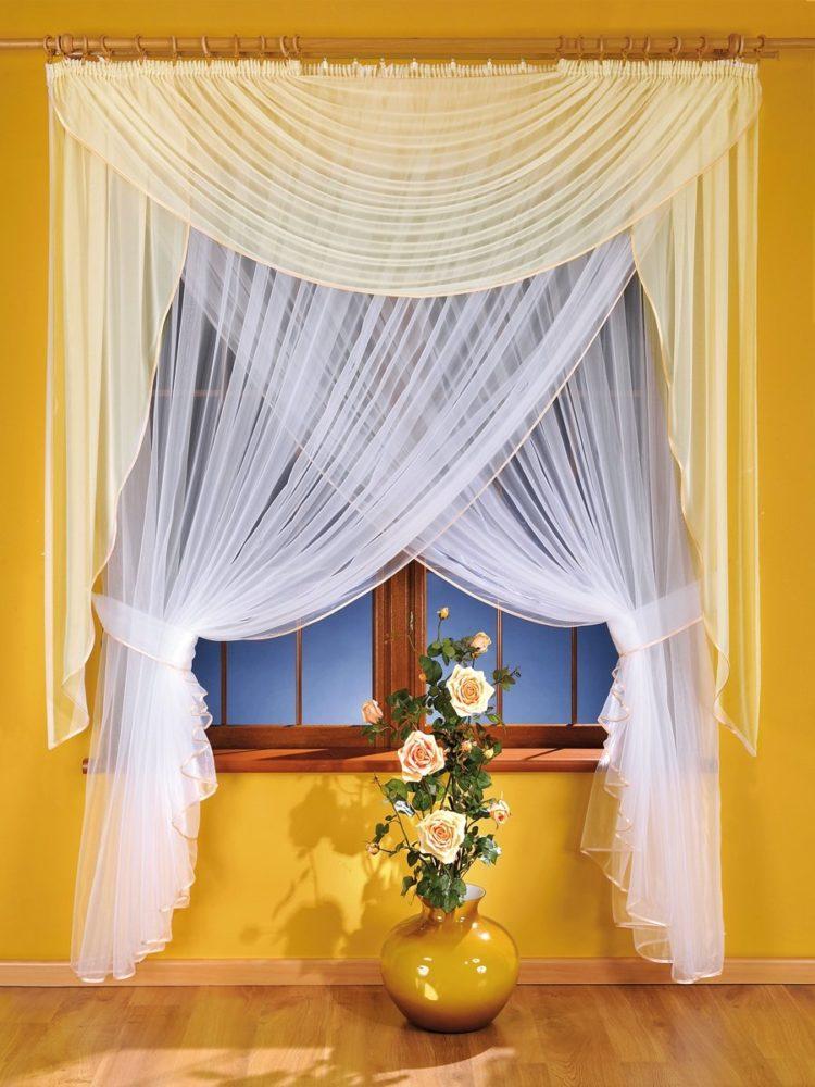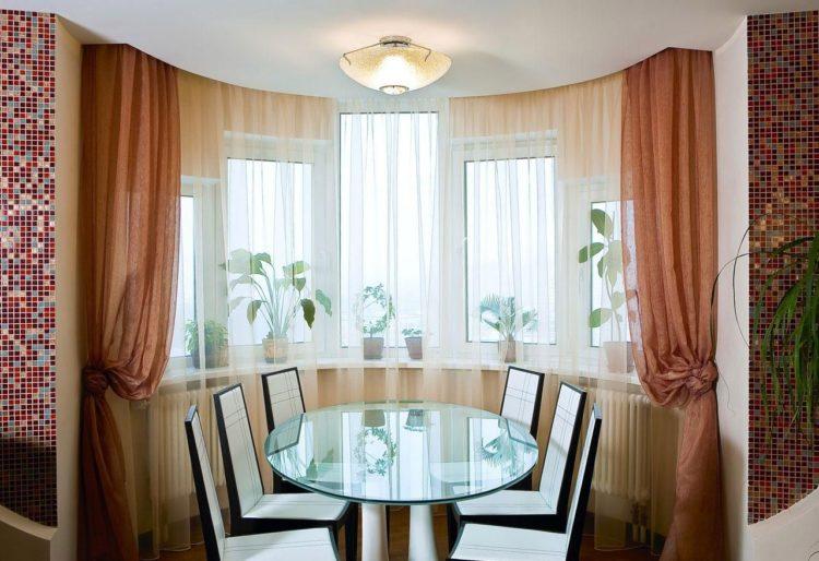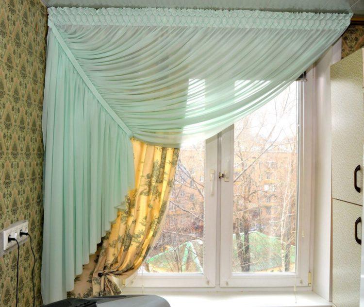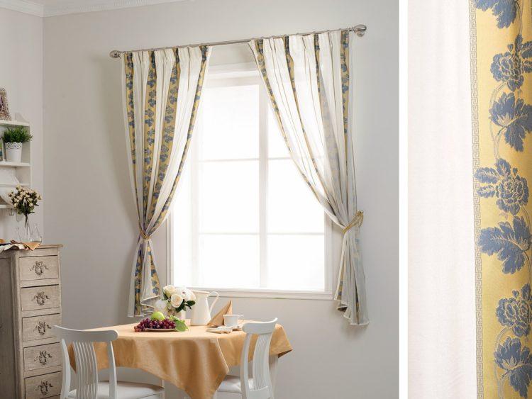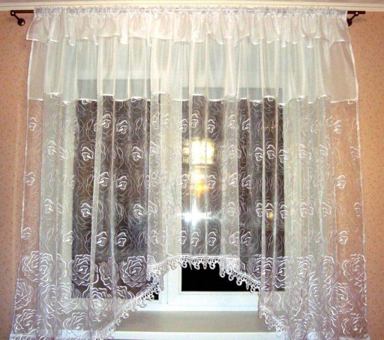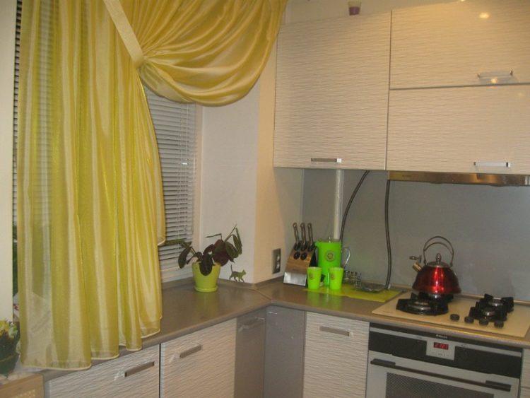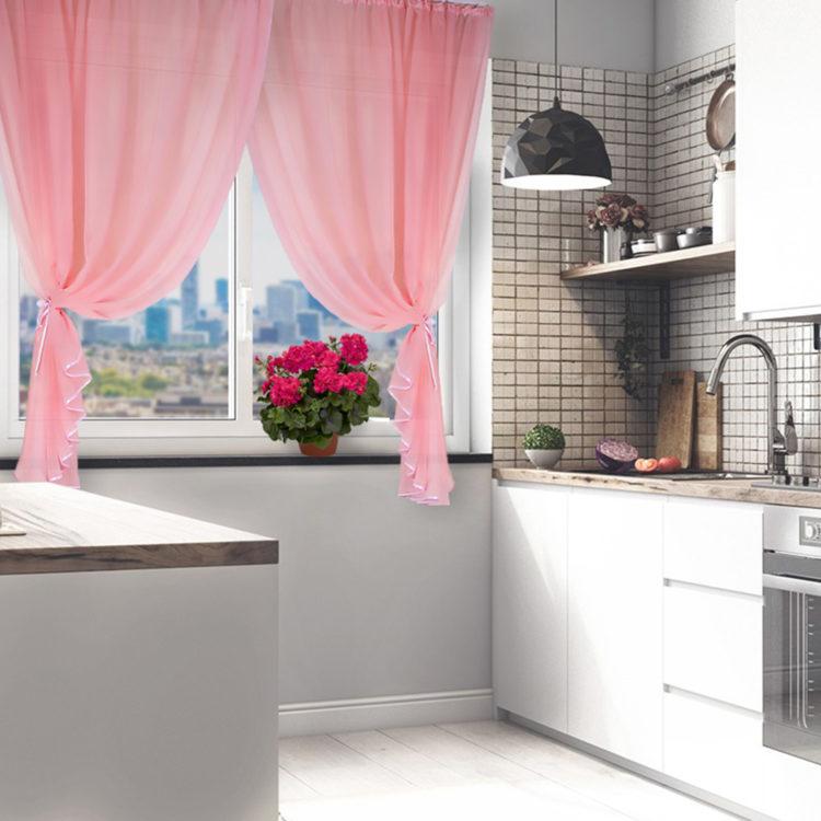 Para una cortina corta, es mejor elegir telas livianas: organza, nylon, malla, ya que los patrones de tela más densos pueden parecer pesados y hacer que el espacio de la cocina sea visualmente aún más pequeño. A continuación presentamos a su atención varias cortinas cortas para la cocina: fotos, diseños interesantes y esquemas de colores inusuales.
