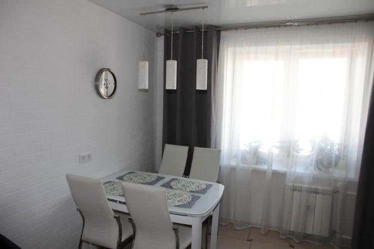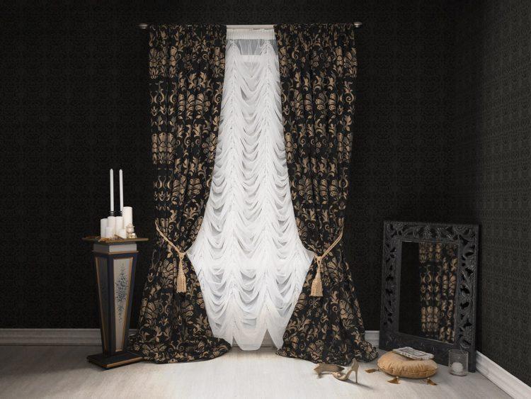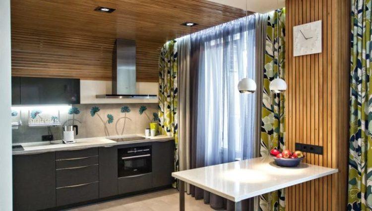 Se permiten cortinas negras cortas en la cocina, fotos y diseños que puede ver a continuación, pero es necesario combinar tonos oscuros con claros. El uso exclusivo de cortinas negras puede hacer que la cocina se vea oscura e incómoda.