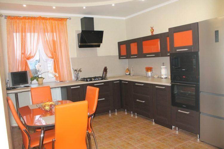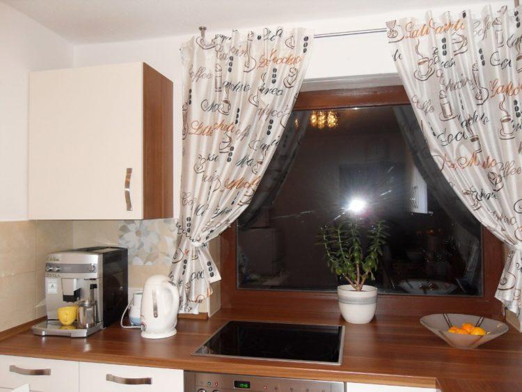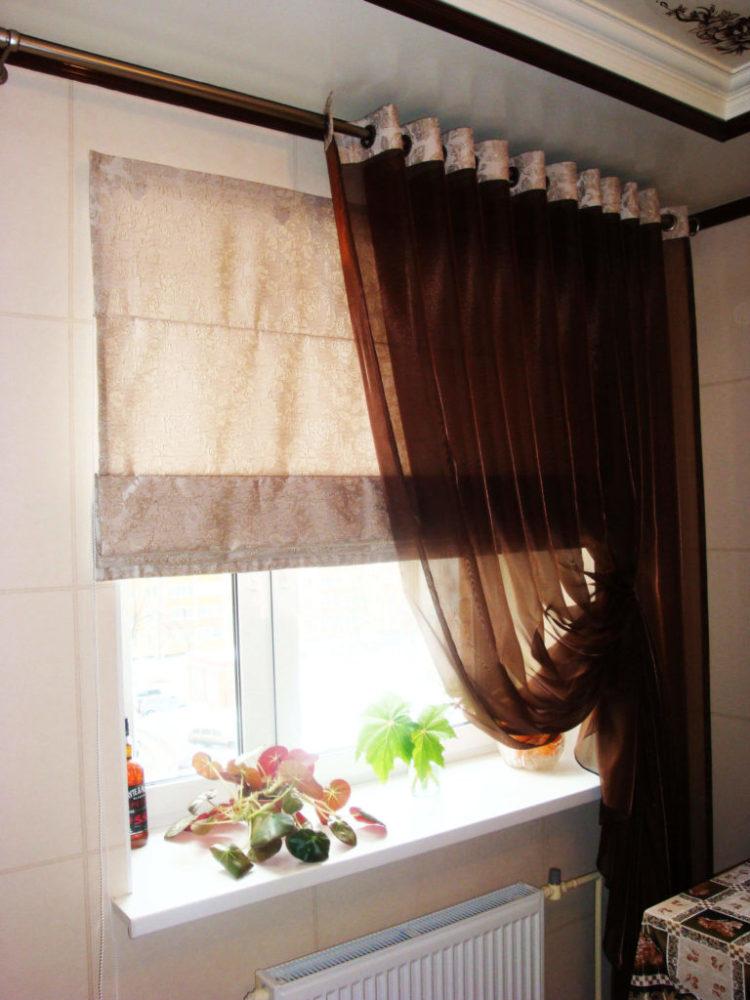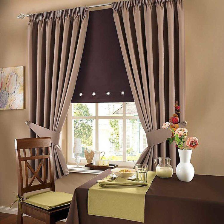 Una cortina oscura en la cocina se verá bien en una habitación grande. A continuación le ofrecemos ver interesantes cortinas de cocina oscuras para el alféizar de la ventana: foto y diseño.