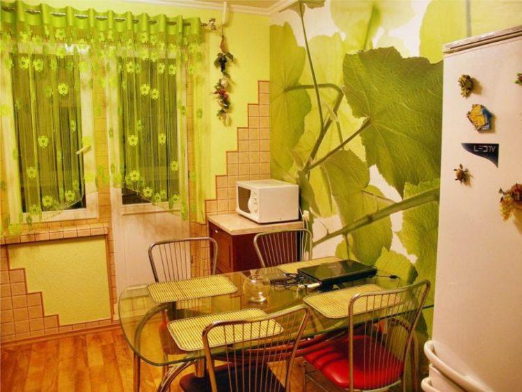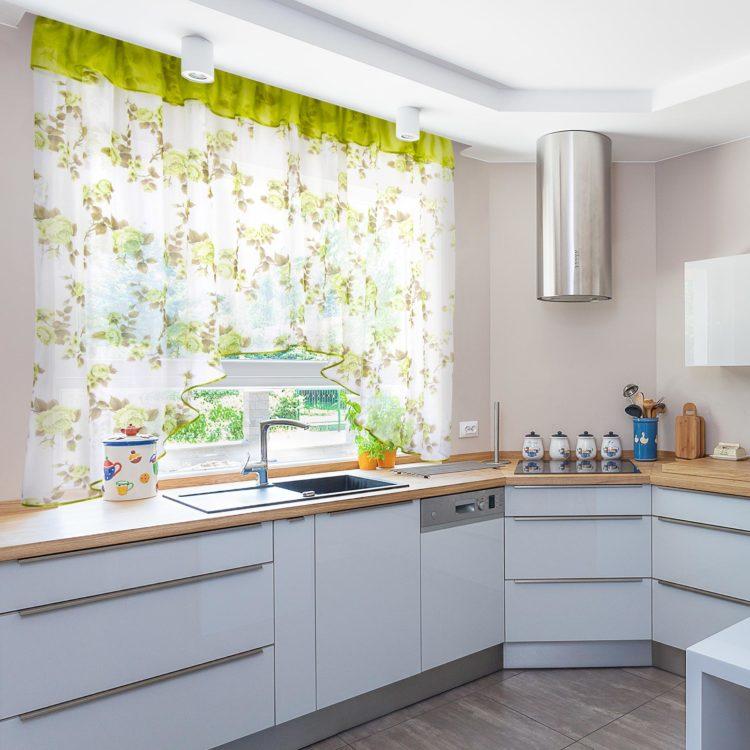 Las cortinas verdes en la cocina se ven muy frescas y se pueden combinar con muchos colores, tanto oscuros como claros. A continuación puede elegir por usted mismo en tonos verdes las cortinas para la cocina son cortas: fotos y soluciones interesantes.
