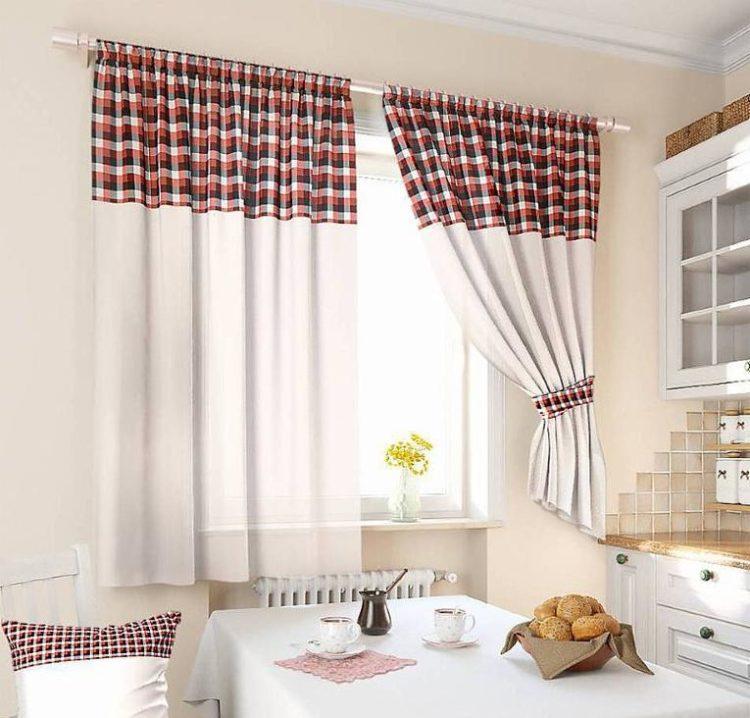 Se recomienda diluir los tonos oscuros de las cortinas con tonos claros. A su vez, para hacer que las cortinas de luz sean más originales y elegantes, puede intentar combinarlas con colores oscuros. Una selección de fotos lo ayudará a determinar su elección y elegir la mejor opción para cortinas cortas en la cocina.