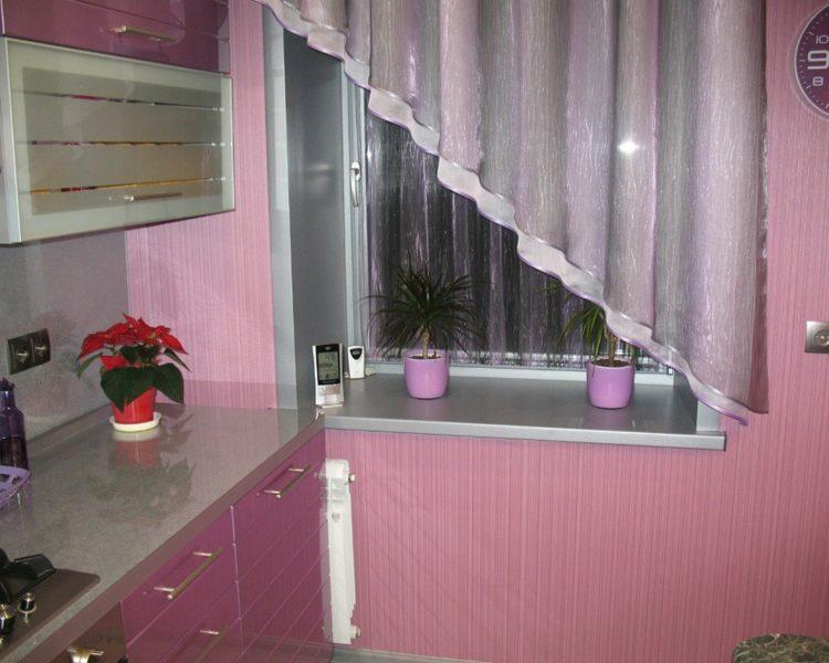 Si desea elegir cortinas cortas y modernas para una ventana en la cocina, siempre puede dejar su elección en colores brillantes. Las cortinas brillantes siempre son hermosas y se adaptan a cualquier estilo y área.