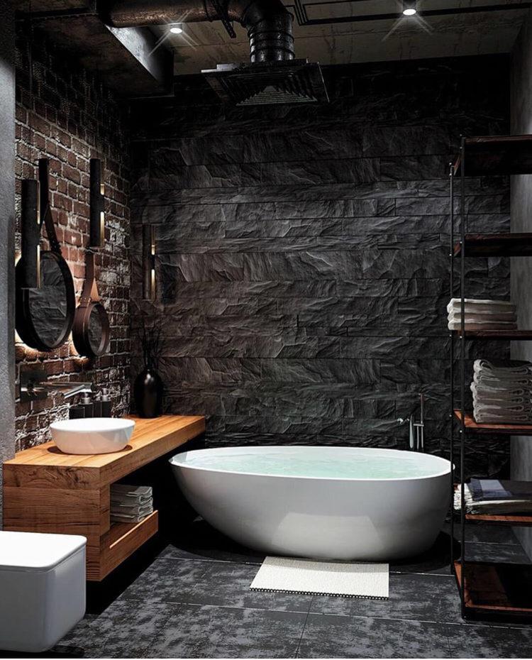 Las casas más elitistas y elegantes a menudo se centran en el baño, realizando todo el diseño interior o sus elementos grandes en color oscuro. Los tonos oscuros son adecuados para baños grandes.