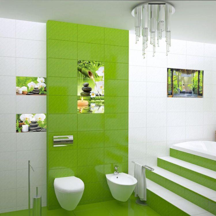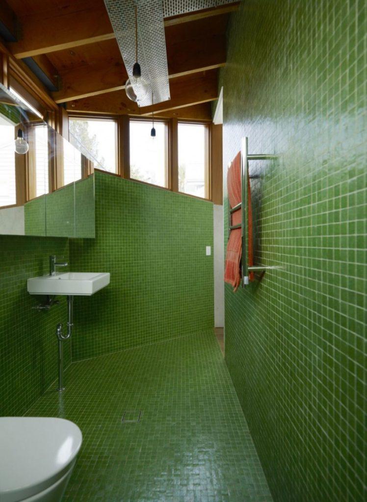En verde, un baño hermoso puede mejorar la energía de una persona y agregarle vitalidad. El verde, además, combina bien con otros colores, mientras que no se ve demasiado pegadizo, como otros colores brillantes, como el rojo.