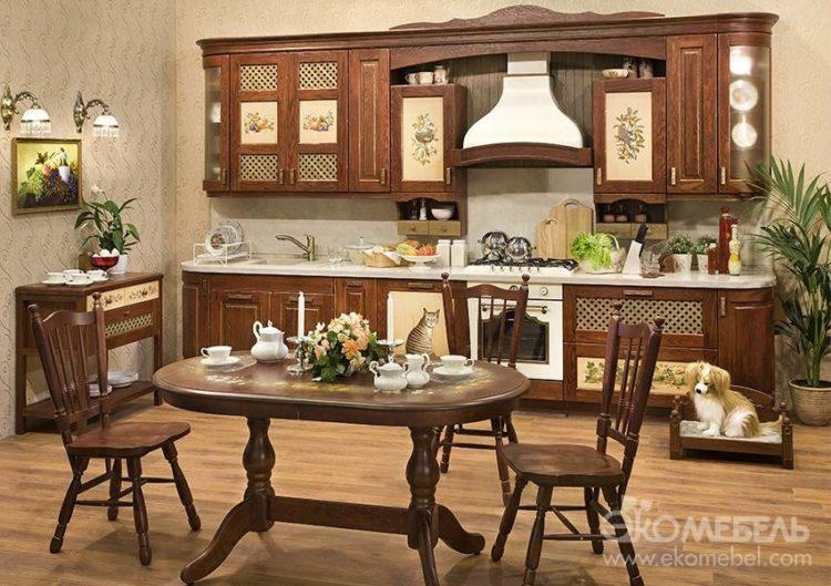 Provence (ver foto a continuación) ayuda a dar una mayor comodidad a la cocina para darle un color marrón.Los diseñadores usan toda la gama de este tono. Personifica muchos materiales naturales, por lo tanto, está presente en abundancia. Cocina sala de estar en estilo provenzal en la foto: