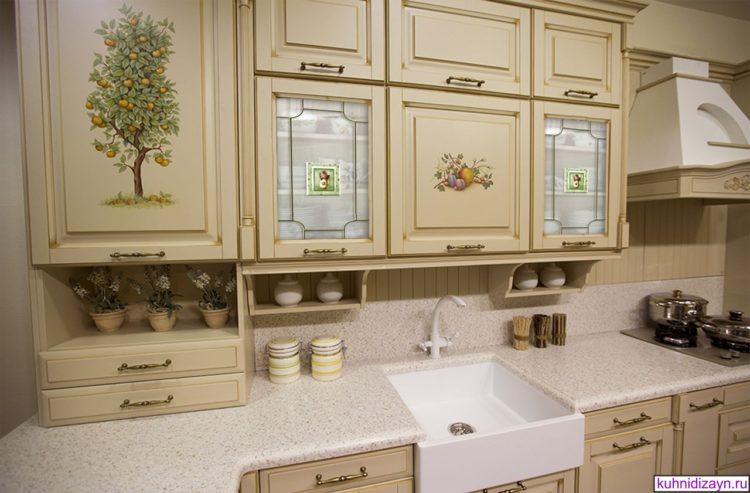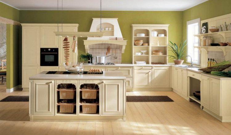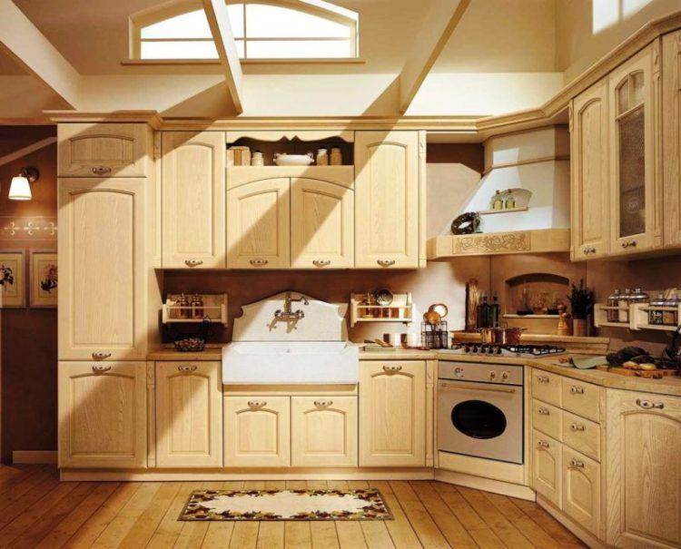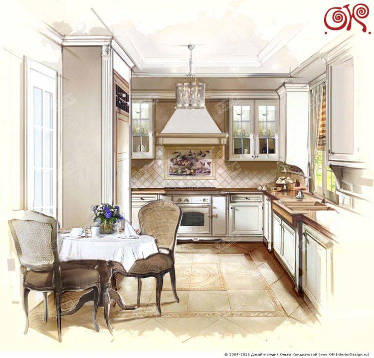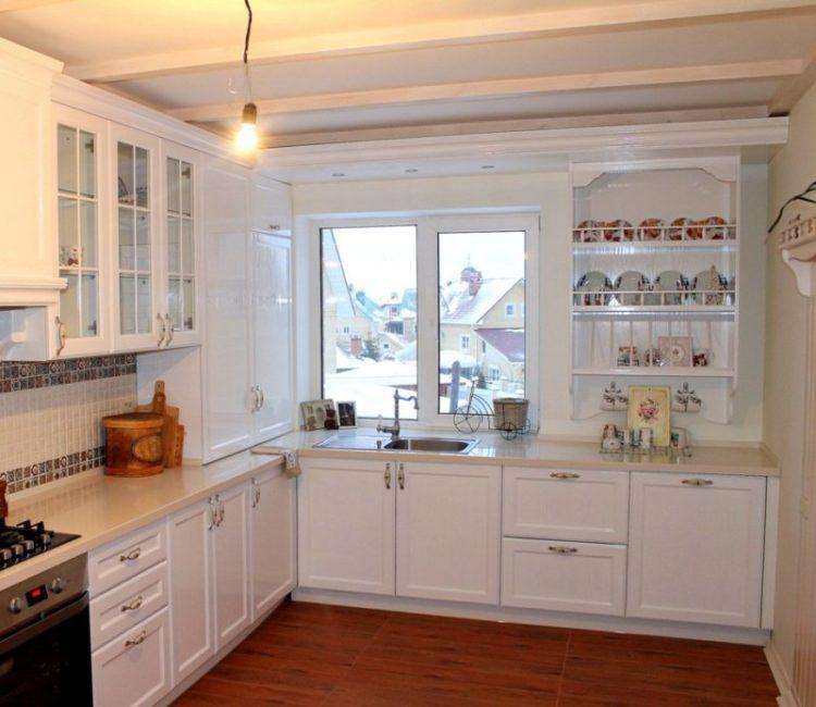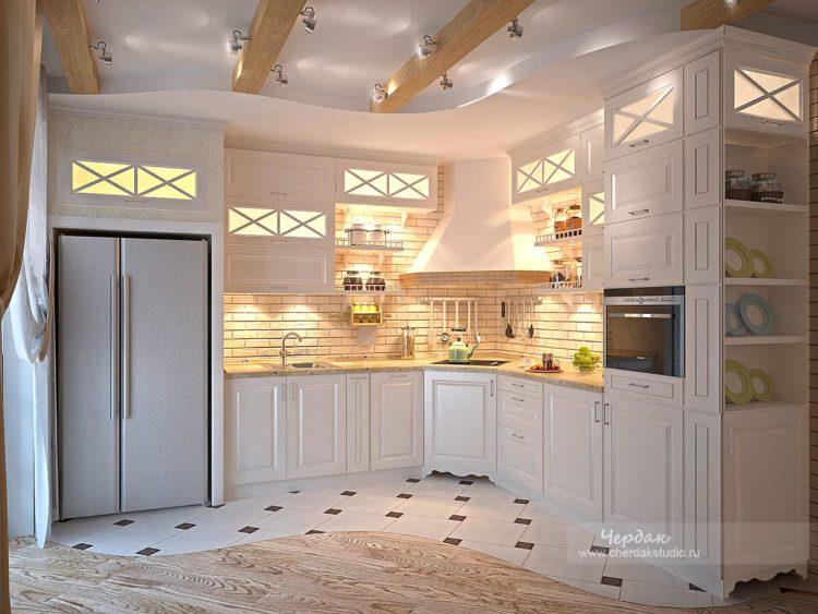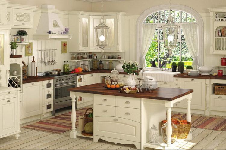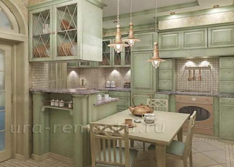 Como regla general, el fondo es delicado color beige, las paredes y el techo están pintados. Sin embargo, a pesar de su ventaja en el entorno, el juego de cocina de Provenza, así como otros artículos y utensilios, también pueden ser de este color.