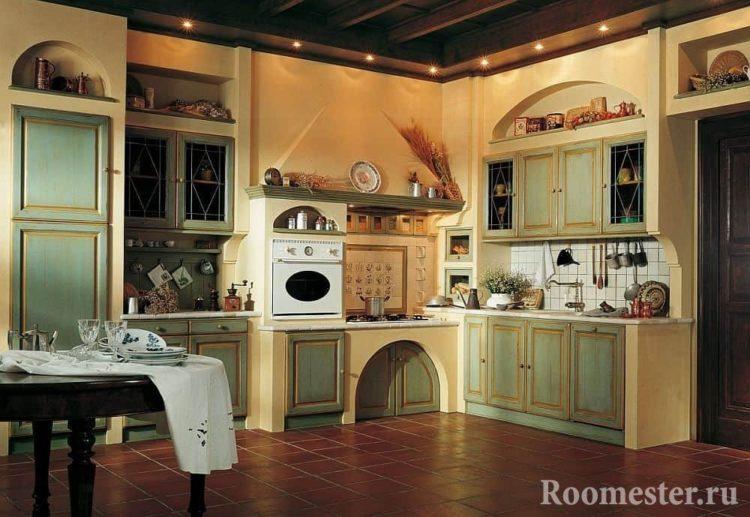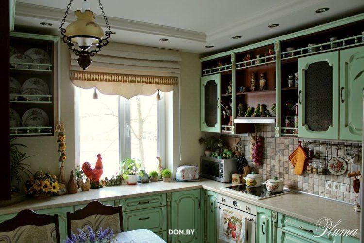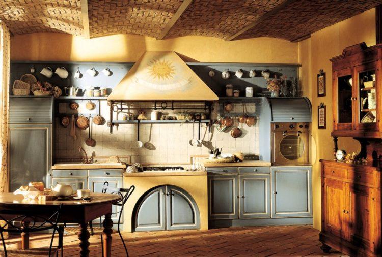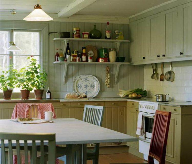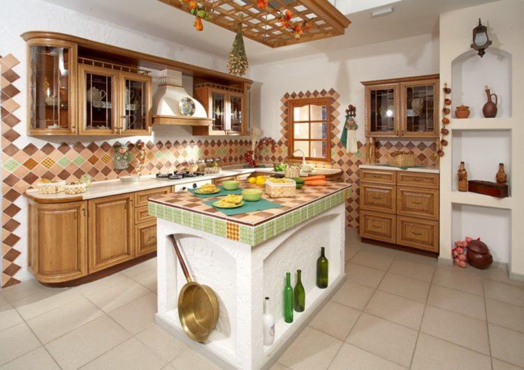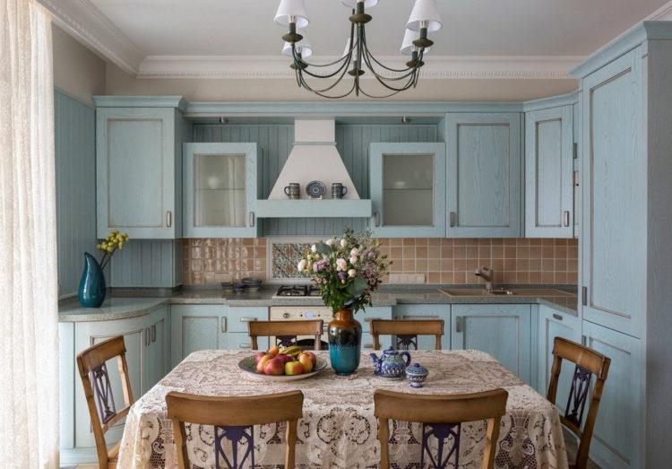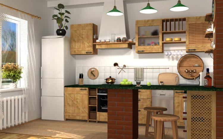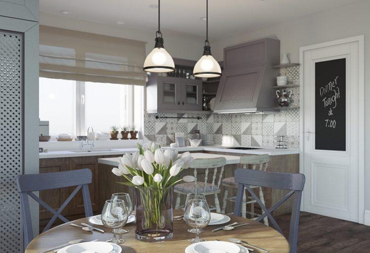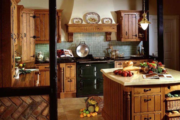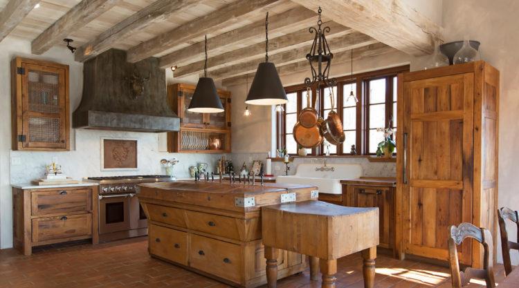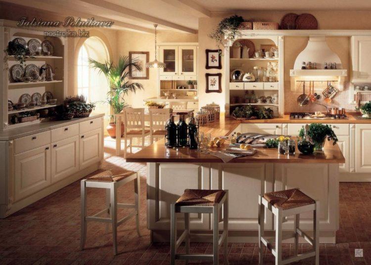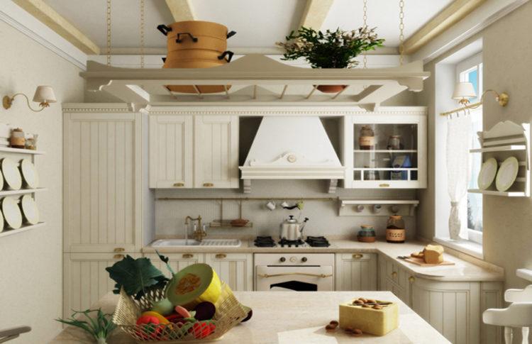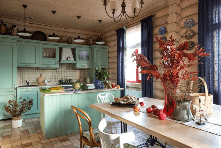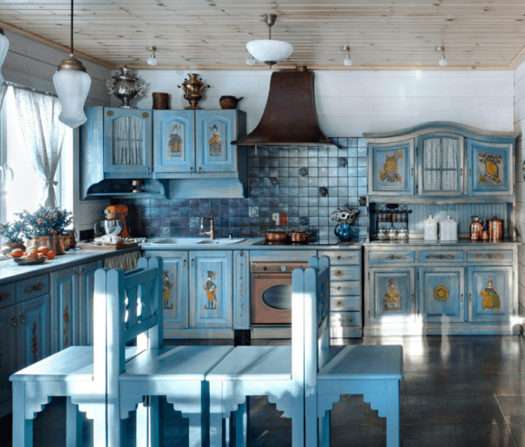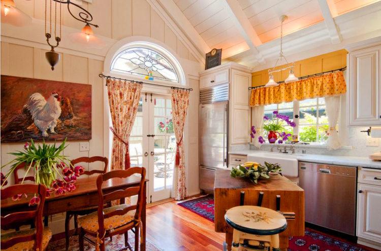 El estilo rústico de la cocina es la naturalidad de los materiales, la decoración rústica con una ligera grosería de los elementos, colores neutros. El diseño de la cocina contiene objetos de la cultura popular que reflejan el sabor nacional, la presencia de patrones tradicionales, adornos florales, una gran cantidad de textiles en forma de servilletas, manteles, toallas, cortinas.
