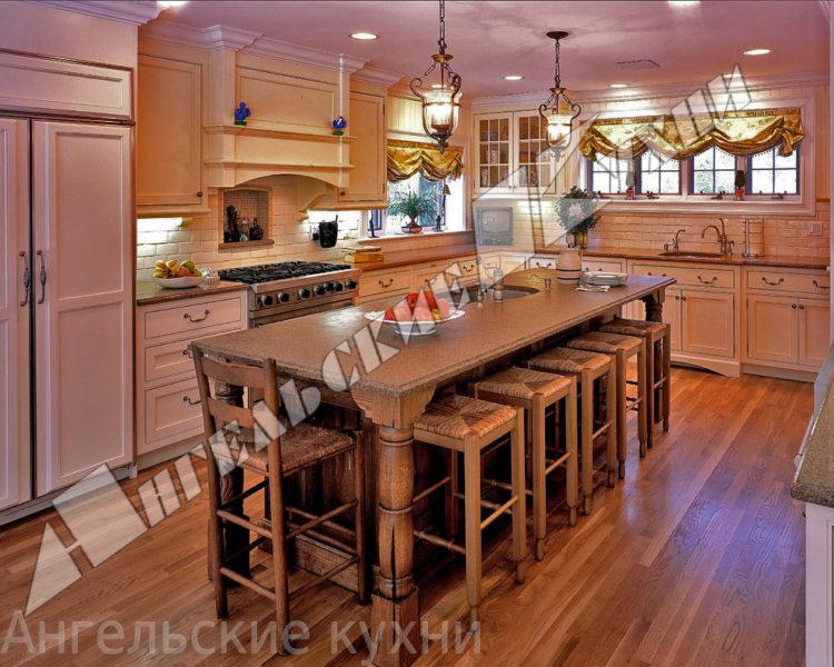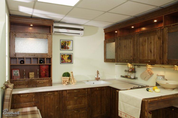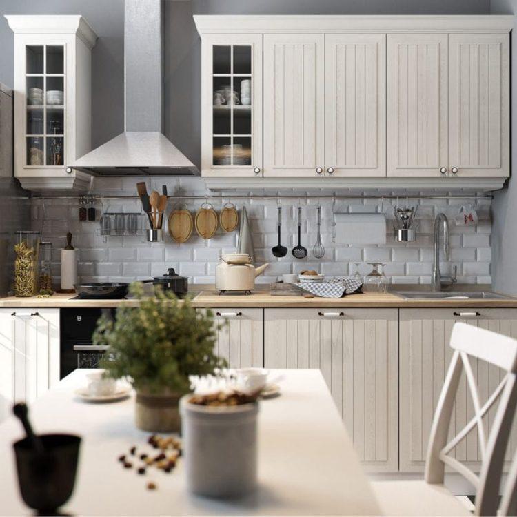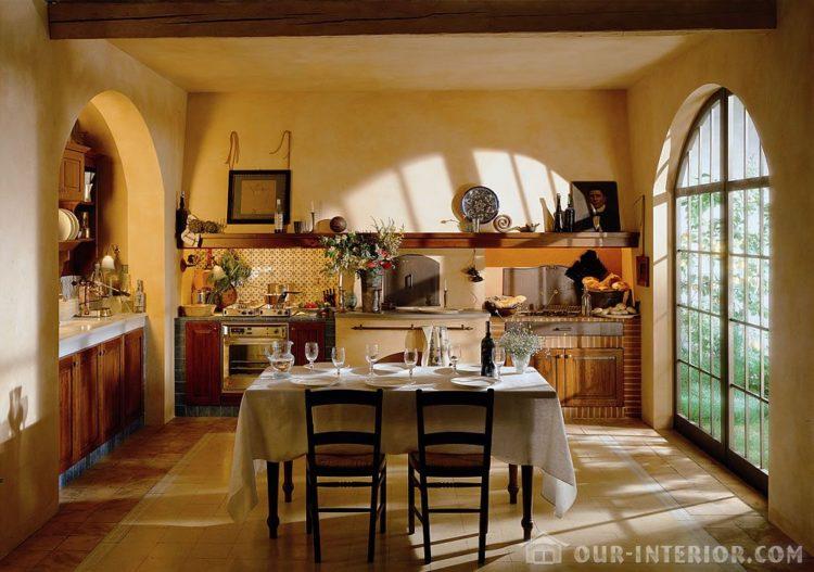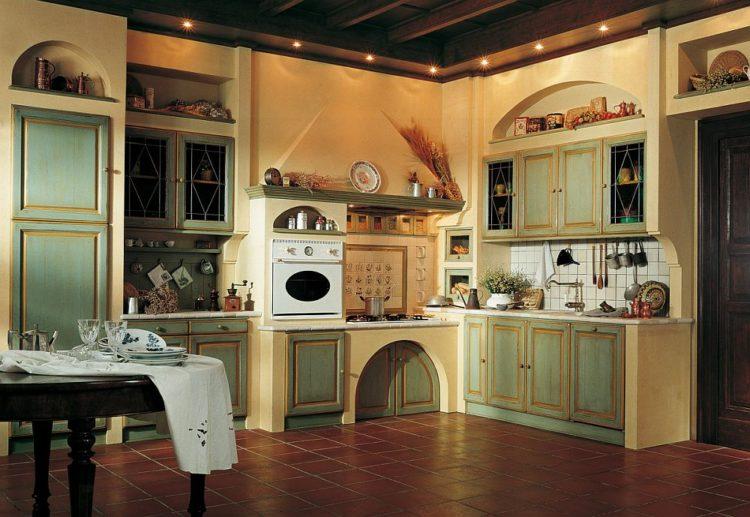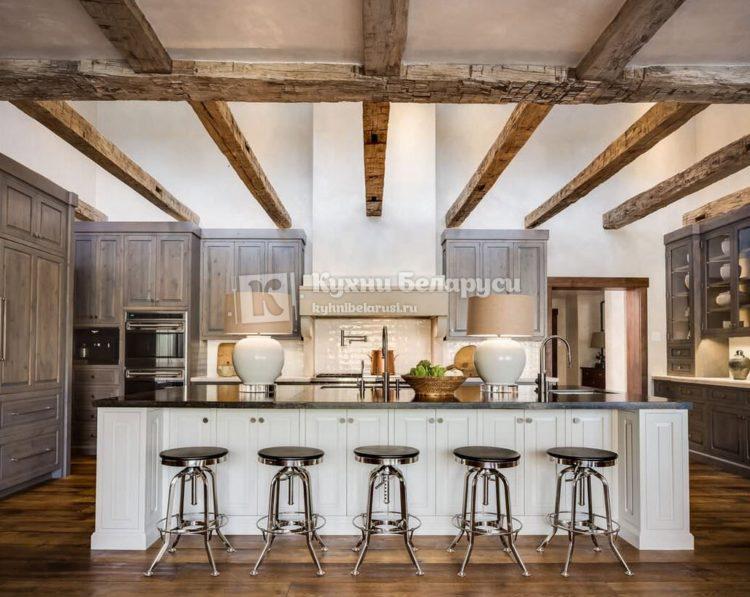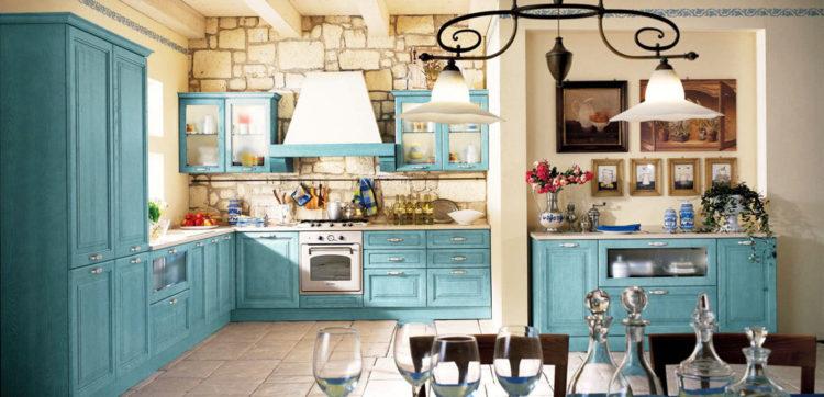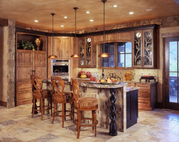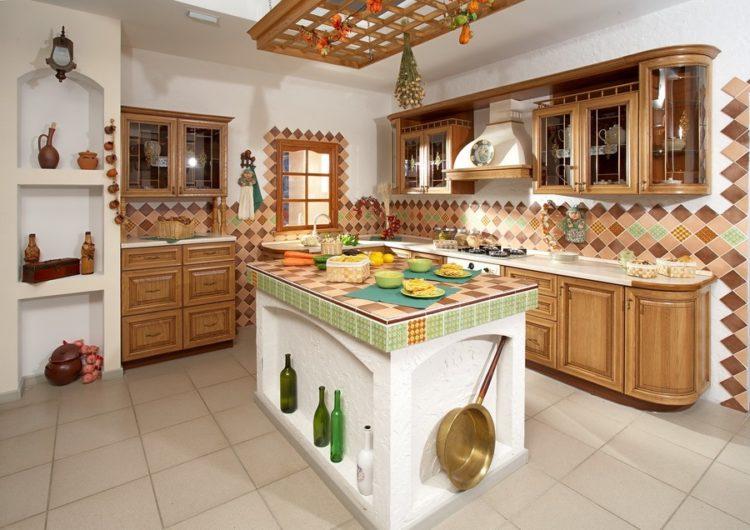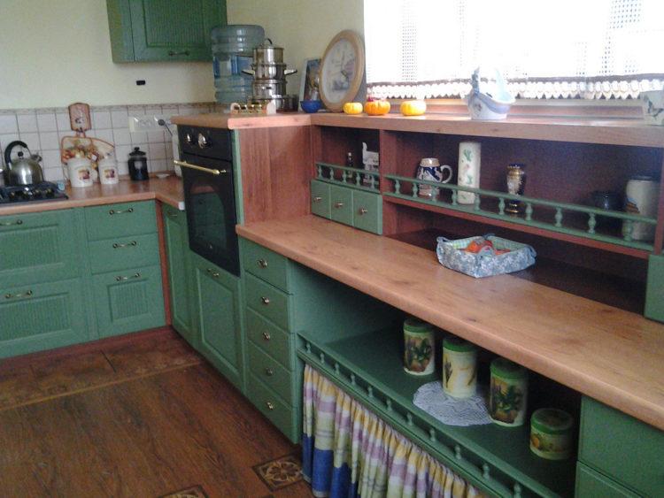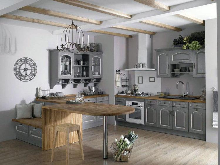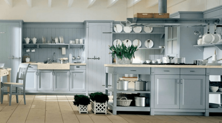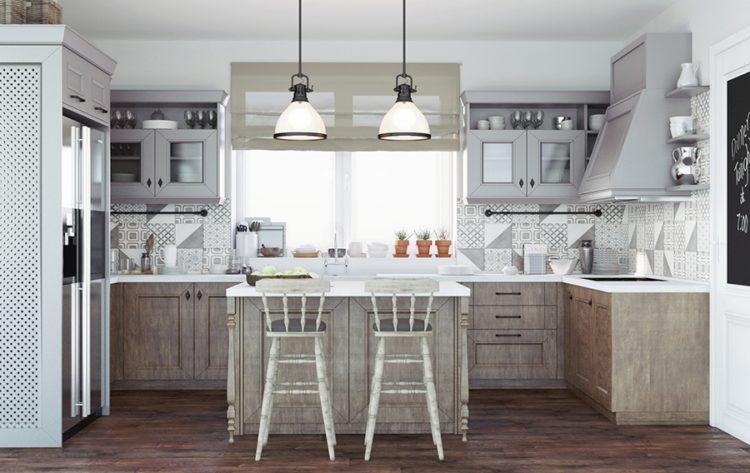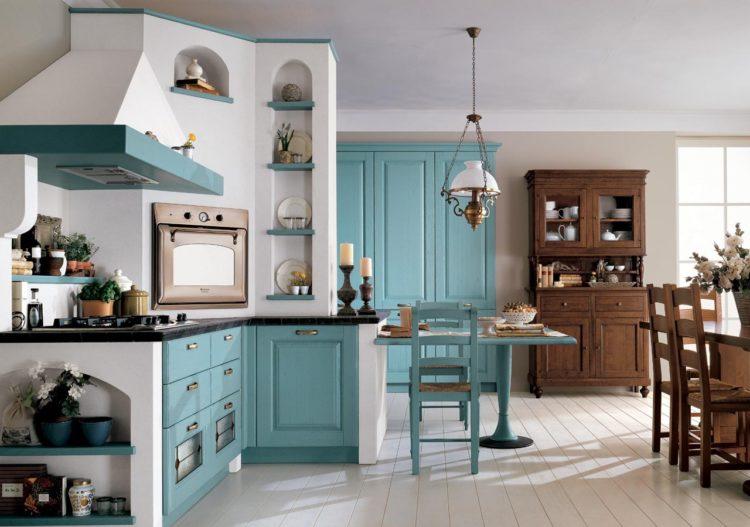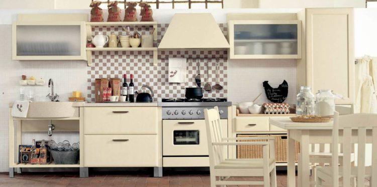 El estilo rústico de la cocina es la naturalidad de los materiales, la decoración rústica con una ligera grosería de los elementos, colores neutros. El diseño de la cocina contiene objetos de la cultura popular que reflejan el sabor nacional, la presencia de patrones tradicionales, adornos florales, una gran cantidad de textiles en forma de servilletas, manteles, toallas, cortinas.