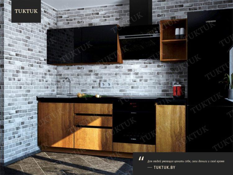 Sala de estar con cocina se puede conectar. Luego, en el interior, puede usar un ladrillo oscuro para dar negligencia y grosería.