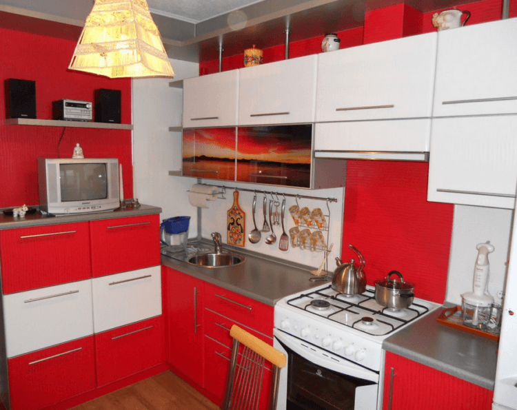 Puede ver y elegir el fondo de pantalla apropiado con un patrón rojo brillante para una cocina rústica (foto con fondo de pantalla de diferentes patrones en una flor, tira, jaula, elegante adorno) aquí.