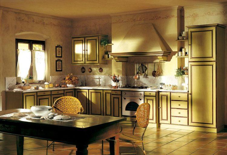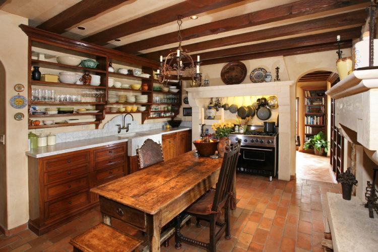 Recuerda que los muebles deben ser un poco antiguos. Para decorar el juego de cocina se pueden utilizar tallas y elementos forjados en negro.