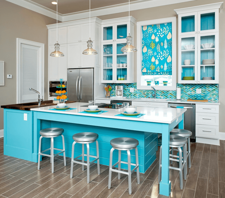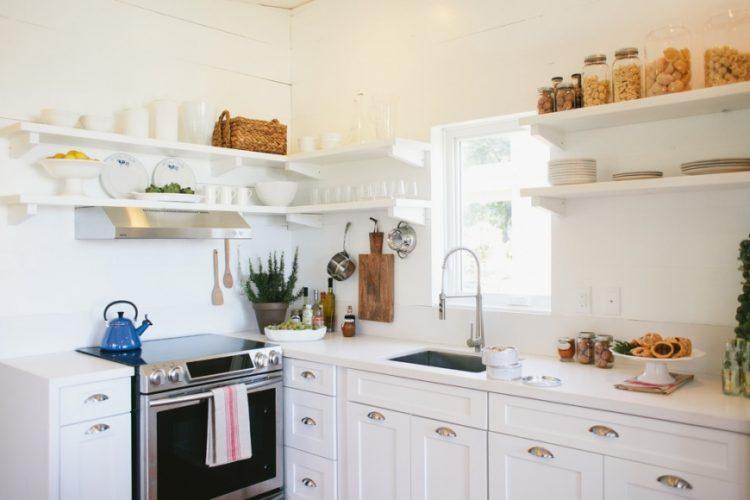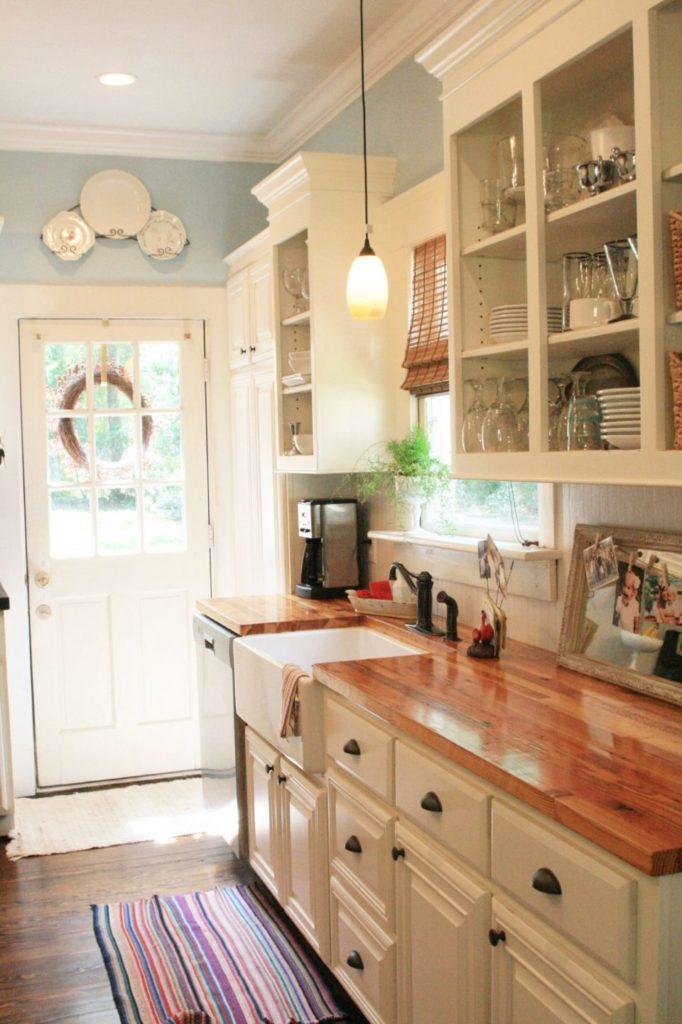 Agregue colores claros al interior de la cocina rústica, y no solo expandirán visualmente el espacio, sino que también agregarán más luz a la habitación.