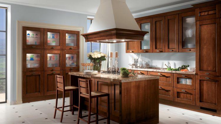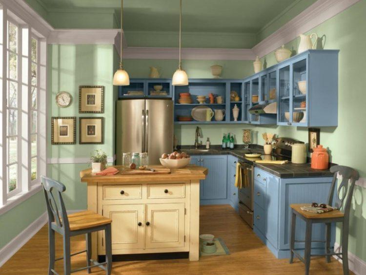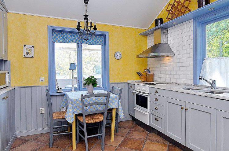Para que la cocina rústica se vea discreta y al mismo tiempo elegante, al pintar paredes, debe dar preferencia a los tonos cálidos: beige, crema, melocotón, etc.