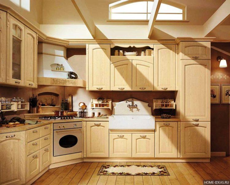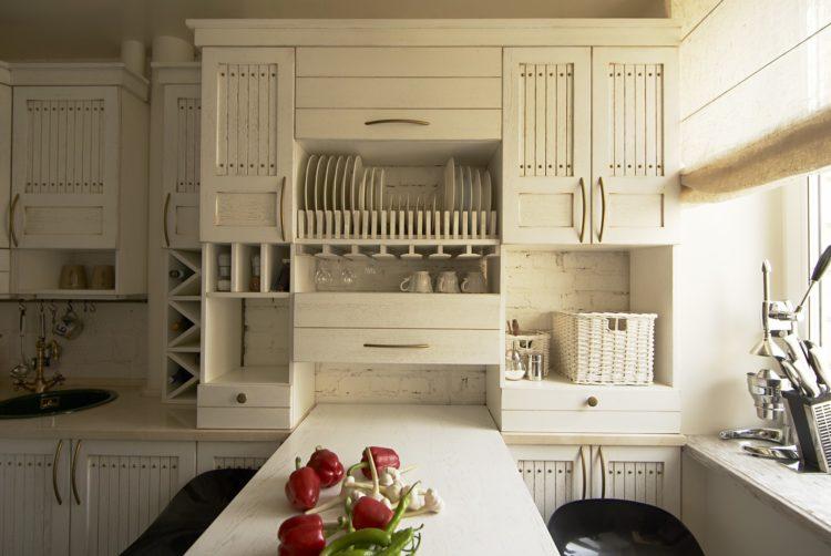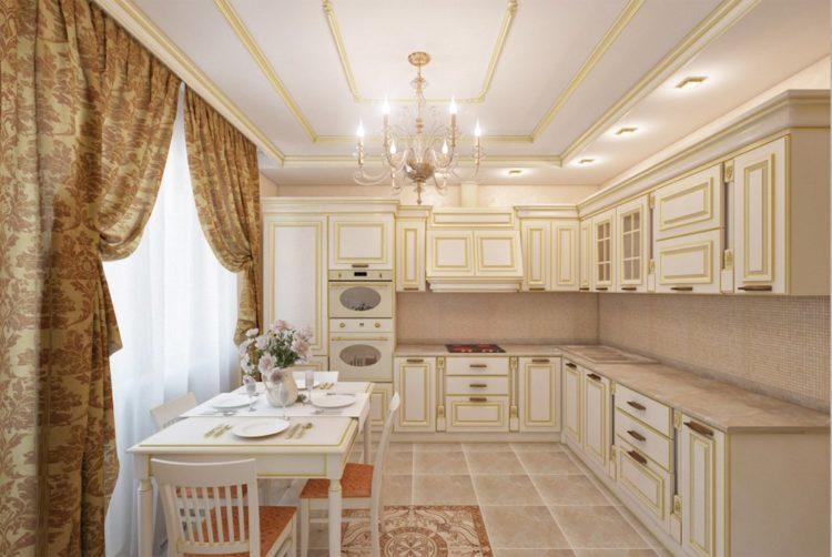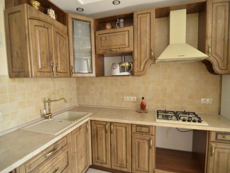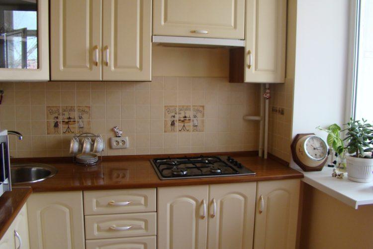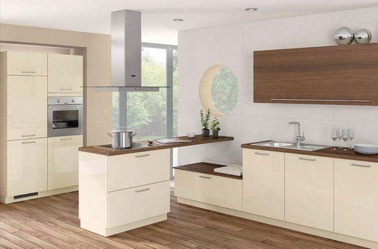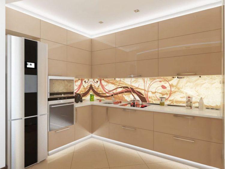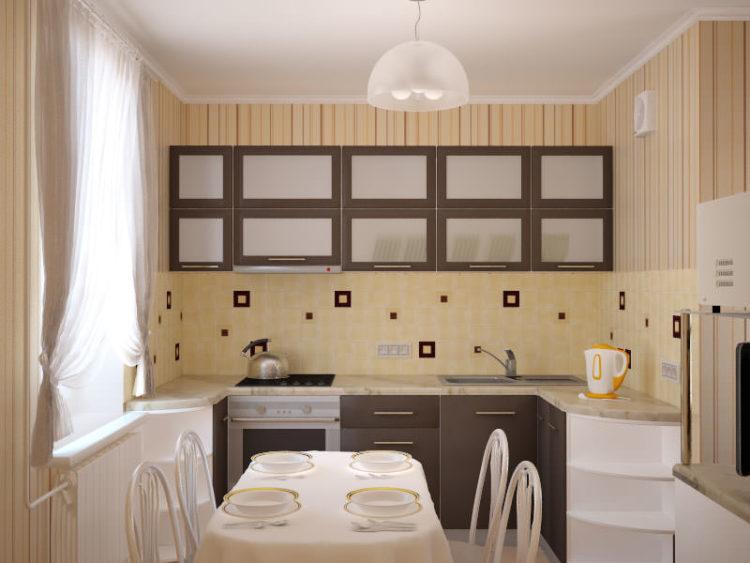 El interior de la cocina en Jruschov, hecho en tonos beige, le dará calma, comodidad y calidez.