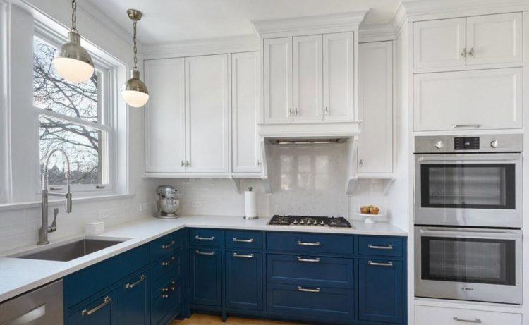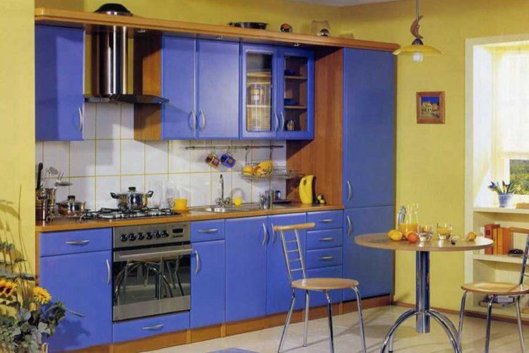 Si en la cocina de su Jruschov está el lado soleado, entonces todos los tonos de azul ayudarán a crear una atmósfera fresca, pero al elegir este diseño debe evitar decoraciones innecesarias.