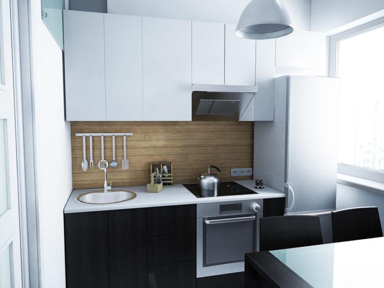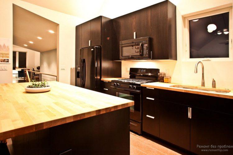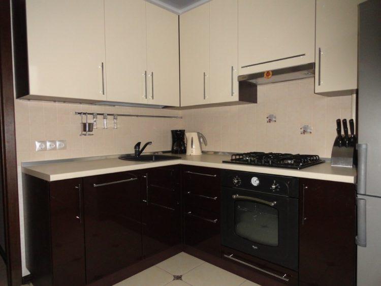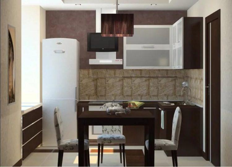 Para una cocina pequeña, el interior en tonos oscuros no es categóricamente adecuado, ya que reduce visualmente el espacio.