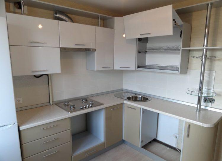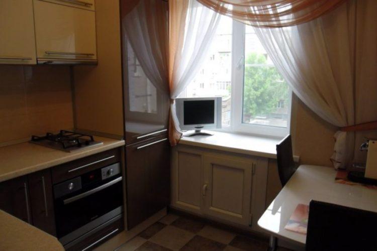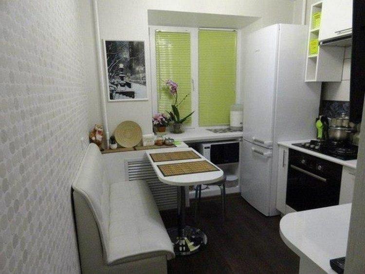 En primer lugar, vale la pena considerar las ideas de reurbanización, en las que parte de la pared se demuele (si no está soportando), y la cocina está conectada a la sala de estar. También es mejor seleccionar un juego de cocina al estilo minimalista, para que el espacio no se sobrecargue. La cocina de esquina en Jruschov se adapta perfectamente a las esquinas de la habitación, y el alféizar de la ventana, convertido en una mesa, ahorra mucho espacio. Si tiene el objetivo principal: la reparación de alta calidad en la cocina en Jruschov, nuestro artículo con muchas fotos lo ayudará con esto. ¡Hagamos que Jruschov sea hermoso y elegante!