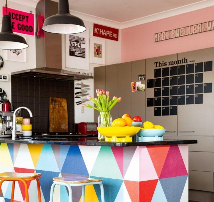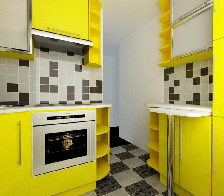 Hermoso diseño brillante de la cocina: el más exitoso para un espacio pequeño.