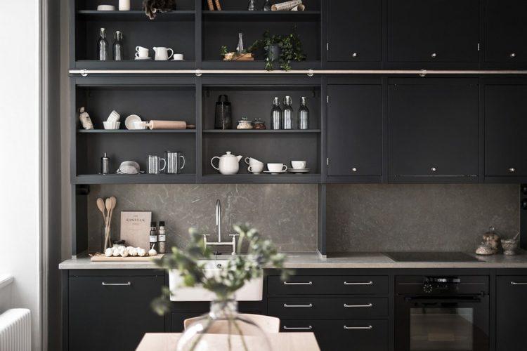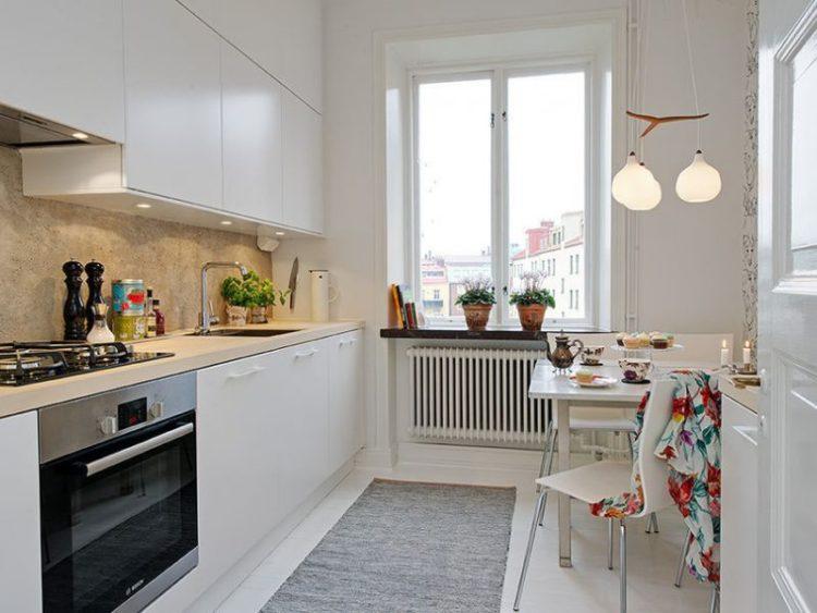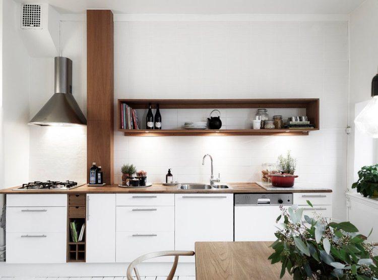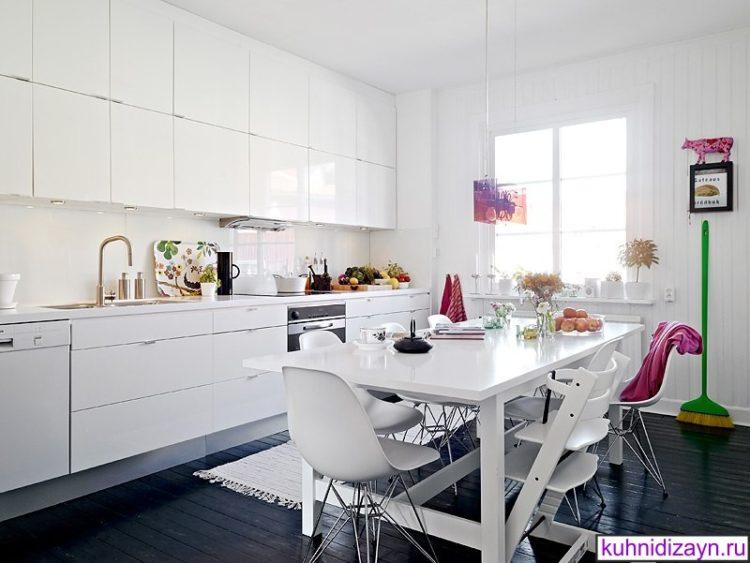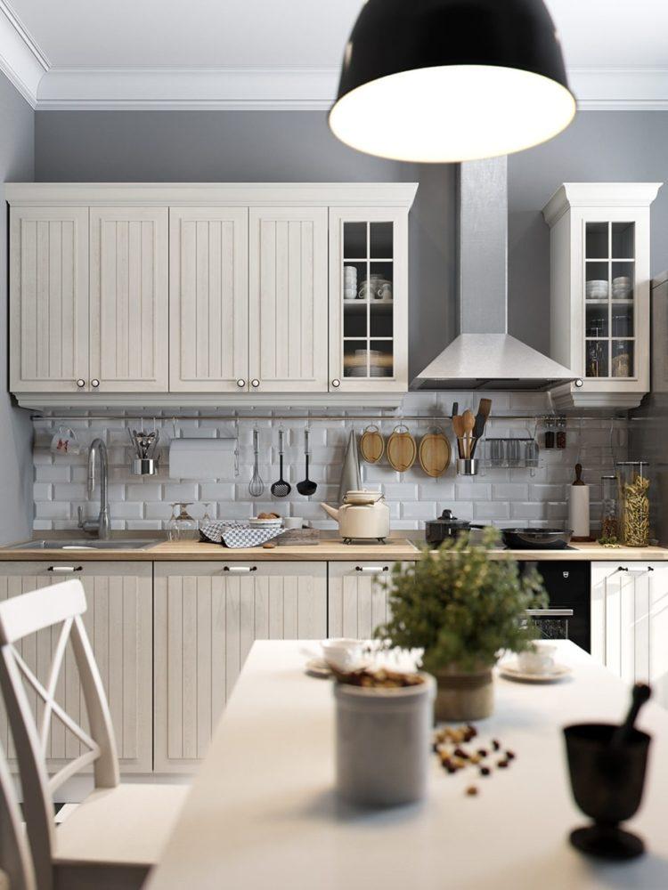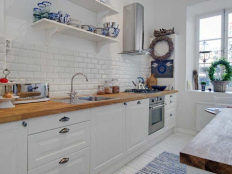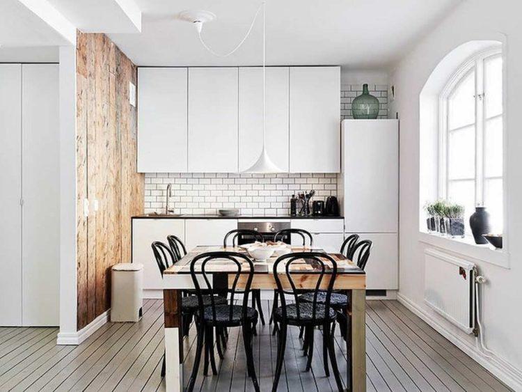 Escandinavia es una región fría y dura, donde el sol a menudo no es suficiente, por lo que los habitantes de esas regiones rechazan fundamentalmente el color oscuro en la cocina, usándolo solo en elementos y decoración. Los colores brillantes se usan con mayor frecuencia en la decoración, por ejemplo, en el diseño de un delantal de cocina, o se compran cortinas o platos brillantes. Las mesas y una unidad de cocina son preferibles a los tonos claros (aunque hay excepciones) o al color de la madera natural.